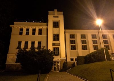 Na rozcestí si zkontroluji, že do cíle už je to vážně jen kousek, a po modré turistické značce vyrážím na jih. Poslední kilometry už jsou zase asfaltové a trochu nudné, tak si pustím na mobilu pár písniček a radostí se občas i rozběhnu. Na rozcestí U Lipek se napojím na trasu, kterou jsem šel už chvilku po půlnoci, a za dalších 5 minut vcházím do sokolovny a hlásím příchod. Jsem v cíli, další stovka je úspěšně za mnou!