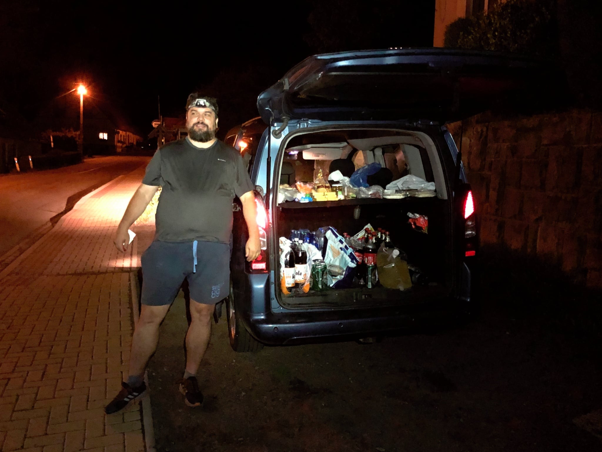 Po 12 hodinách na trase jsem v Polici nad Metují. Dávám si v místní „večerce“ RedBull, Colu a dvě ovocné kapsičky. Platím hodinkami (fakt super funkce!), takže si ani nemusím sundavat batoh, a sedám si na lavičku před prodejnou. Během krátké chvilky do sebe srknu jednu kapsičku, vypiju Colu a zvrhnu si RedBulla… No nic, stejně jsem na něj neměl chuť, takže znovu na cestu. Zbývá posledních 20 kilometrů, to už bych měl dát v pohodě.