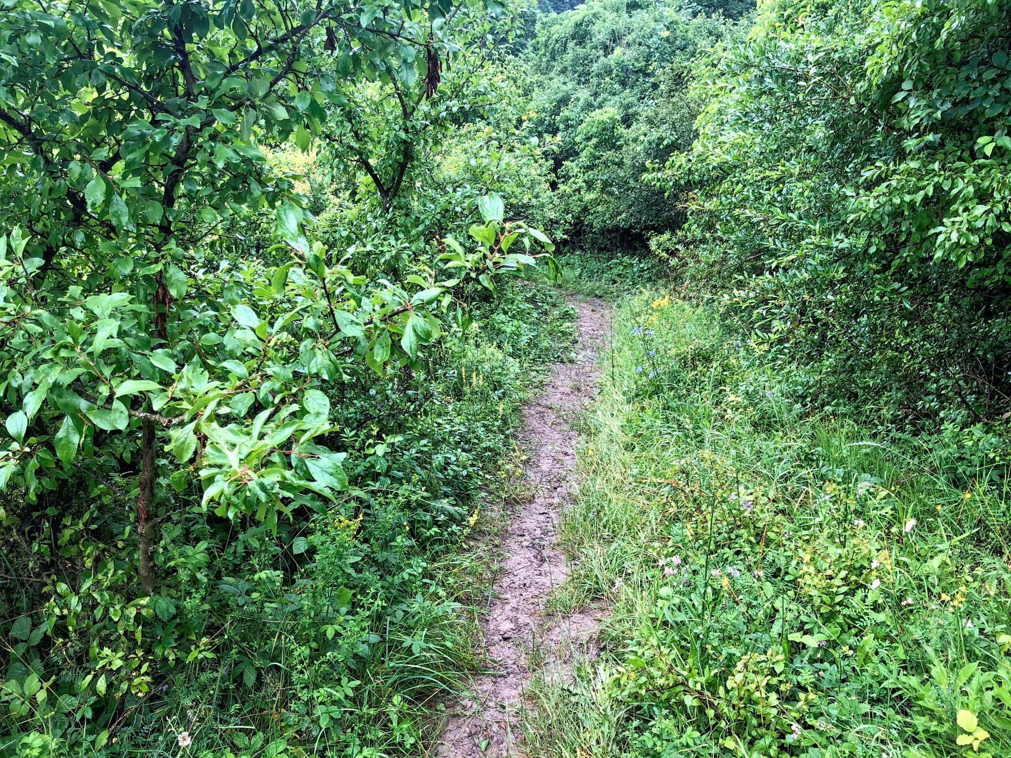 Jak se záhy ukáže, zas taková pohoda to nebude. Do cíle už to sice není daleko, ale hodinky mi pořád ukazují asi 750 výškových metrů. Což není úplně málo. Do Žďáru nad Metují to ještě jde, ale pak začne trasa připomínat tradiční Olafovu pilu – nahoru, dolů, nahoru, dolů… Kopce sice nejsou extrémně dlouhé, jsou ale prudké a střídají se v rychlém tempu. Obzvlášť výživný je kopec dolů do Horní Dřevíče, vzápětí následovaný loukou kolmo na vrstevnice. Hlavní výhodou tohoto šplhání pro mě je zjištění, že mi nikdo vysloveně na záda nedýchá, takže nemusím tak hnát. Koleno z těch prudkých sešupů začíná zase zlobit…