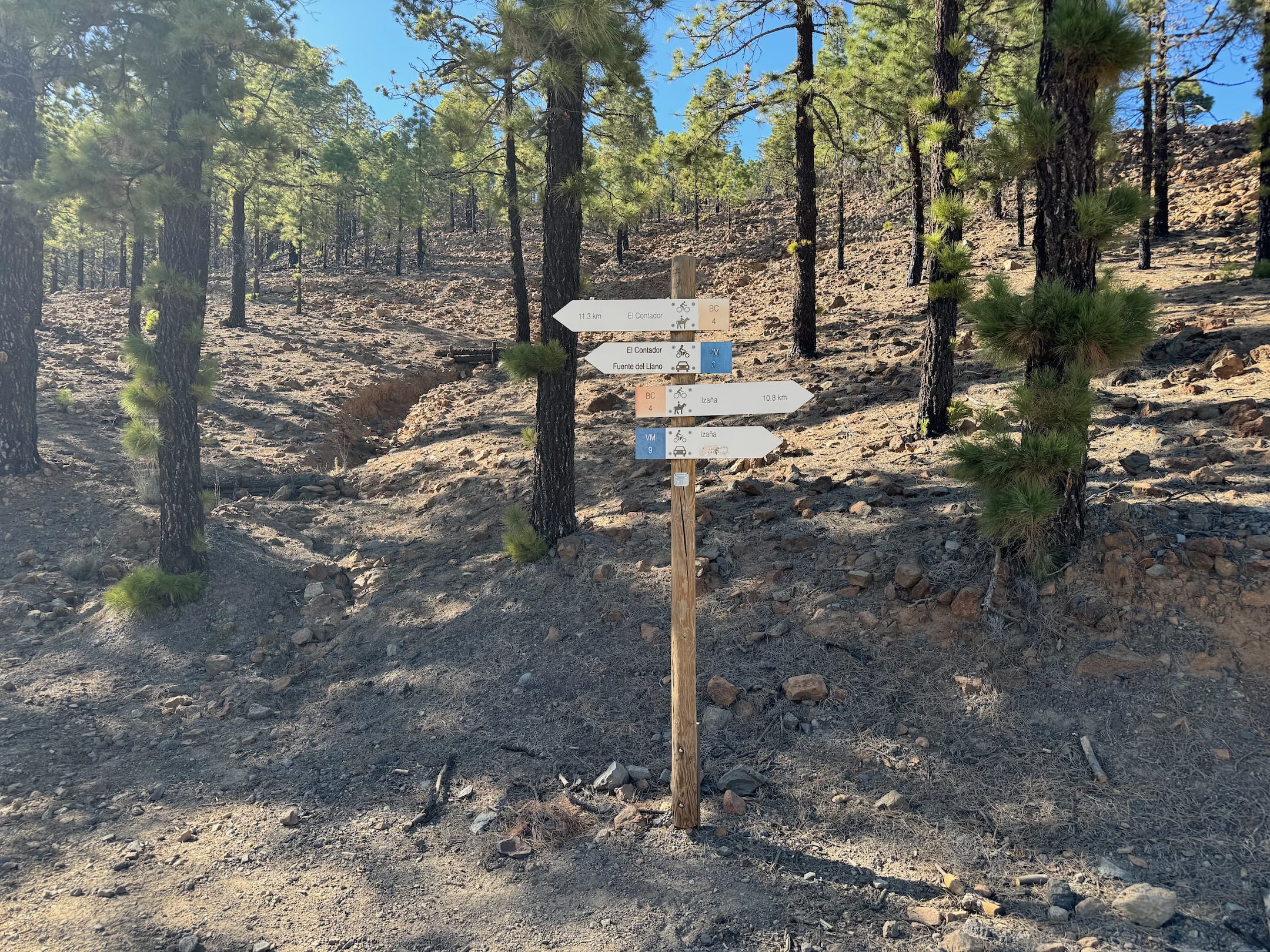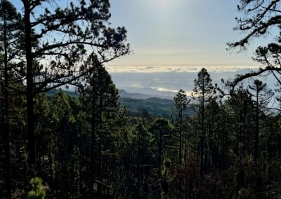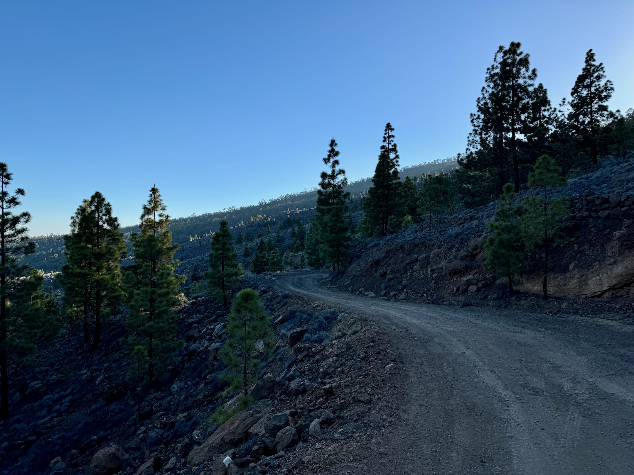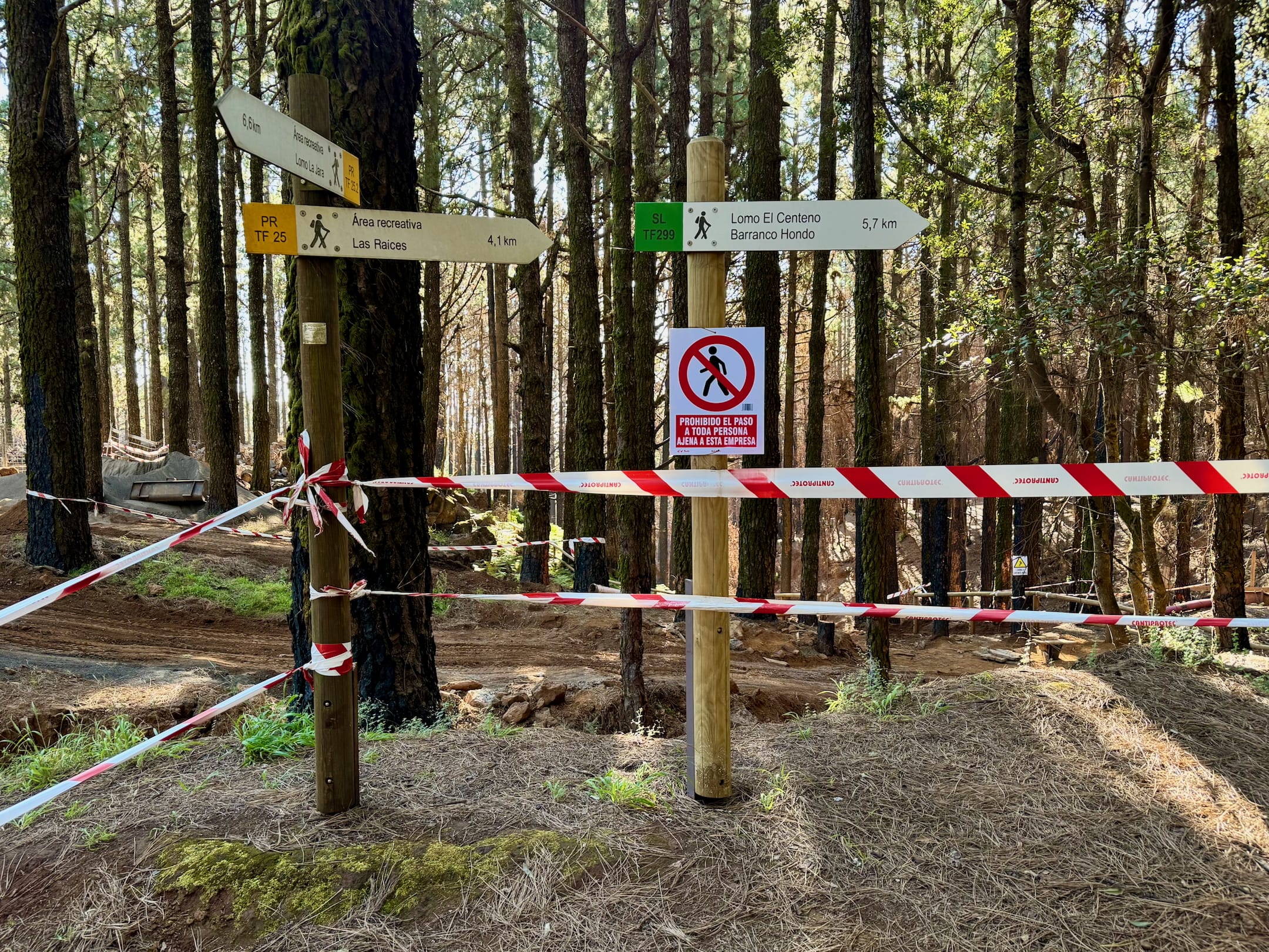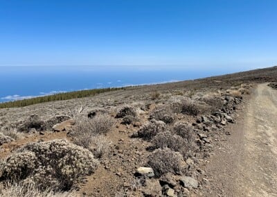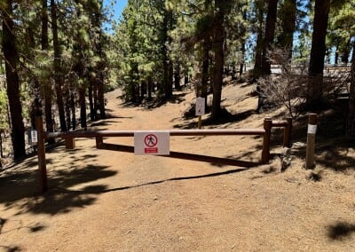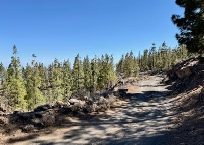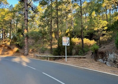 Začíná to být míň zábava. Sluníčko peče a protože je po poledni, je vysoko na obloze a stromy kolem silnice už jsou skoro bez stínu. Cesta je pořád do kopce a z asfaltu mě bolí mě nohy. A když už se někde objeví zajímavá postranní cesta, dost často je za závorou s jasně vyznačeným zákazem vstupu. Naštěstí se blížím k hranici parku Teide, kde by mohla být zábava alespoň o malinko lepší.