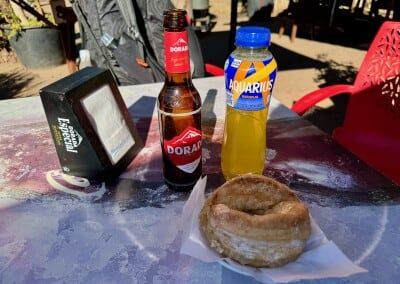V restauraci si objednávám kafe, obloženou bagetu s vajíčkem, sladkou koblihu a spoustu pití. Na zahrádce to do sebe postupně soukám, a protože horda pumpičkářů už vyrazila za dobrodružstvím, je tu konečně i klid. Zkoumám mapu a vypadá to, že dneska si asfaltu užiju víc, než mi bude milé. Až na výjimky po silnici půjdu skoro až k hvězdárně, co jsem se u ní chystal na výstup na Teide. Po jídle si dokoupím i něco málo na cestu a pár minut po desáté se loučím. Nakonec nadvakrát, protože teprve až na silnici si vzpomenu na hůlky ležící na jedné z židlí a musím se pro ně vrátit.
