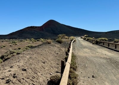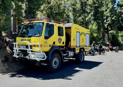 Na vyhlídce Chipeque se zdržím trochu déle. Kromě úžasných výhledů na Teide a okolí tu mají i lavičky, takže si můžu sednout a něco malého pojíst. A přitom se kochat panorámaty a výraznou, žlutě zbarvenou hasičskou cisternou. Asi tu drží pohotovost, kdyby si nějaký inteligent rozhodl někde poblíž udělat ohníček… Po obědě ve společnosti několika ještěrek se sbalím a pokračuji dál ve stoupání.