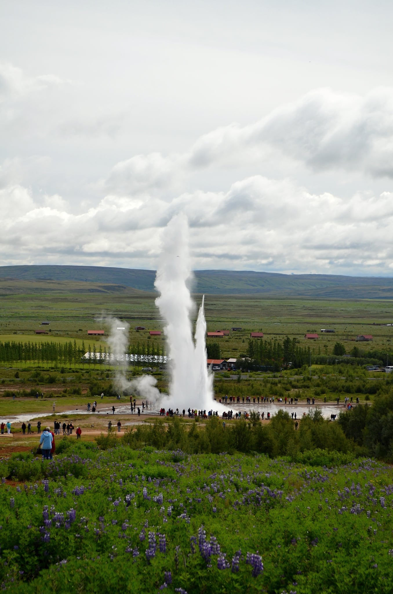 Dost zírání na skromnou sakrální budovu, jedeme se nechat osvěžit sprškou vařící vody tryskající z hlubin země, jedeme na gejzíry v Haukadaluru. Už při příjezdu na parkoviště je jasné, že tady nás moc klidné prostředí nečeká. Snad poprvé máme na Islandu problém zaparkovat, volné místo nacházíme až po chvíli, navíc až na úplném konci parkoviště. A než se dostaneme ke vchodu do oblasti gejzírů a horkých pramenů, kráčíme už v docela početné skupince. Areál je naštěstí celkem rozlehlý, takže se lidé rozptýlí a nepůsobí to tak přecpaně. Tato oblast je aktivní již po tisíce let, ale polohy pramenů se mění v závislosti na pohybu geologických spojů. Dnešní jezírka se na svých místech pravděpodobně objevila po zemětřesení ve třináctém století. Vzhledem k tomu, že teplota podzemní vody dosahuje 125 ⁰C a dokonce i teplota vody povrchové se pohybuje jen málo pod bodem varu, se všem návštěvníkům skutečně vřele doporučuje za žádných okolností nechodit mimo vyznačené stezky.
