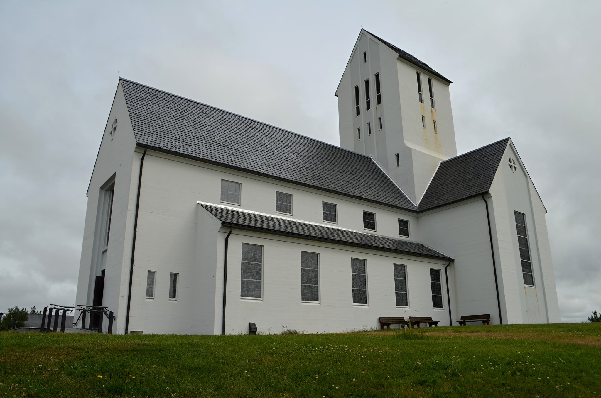 Ještě předtím si ale děláme krátkou zajížďku k jednomu z největších islandských kostelů v místě zvaném Skálholt, kde byl první kostel postaven už v roce 1056. Byla zde rovněž zřízena první škola na Islandu a ve 13. století v osadě žily dvě stovky obyvatel, díky čemuž se vesnice stala největším centrem v zemi. Současná bílá katedrála postavená v letech 1956 až 1963 je skutečně obrovská, na délku měří skoro 30 metrů. Kromě ní je k vidění i dřevěná replika jednoho z předcházejících kostelů se střechou pokrytou travou nebo obrysy původního stavení, ve kterém sídlil místní biskup. K dispozici je zde situační plánek vysvětlující funkci jednotlivých částí domu.