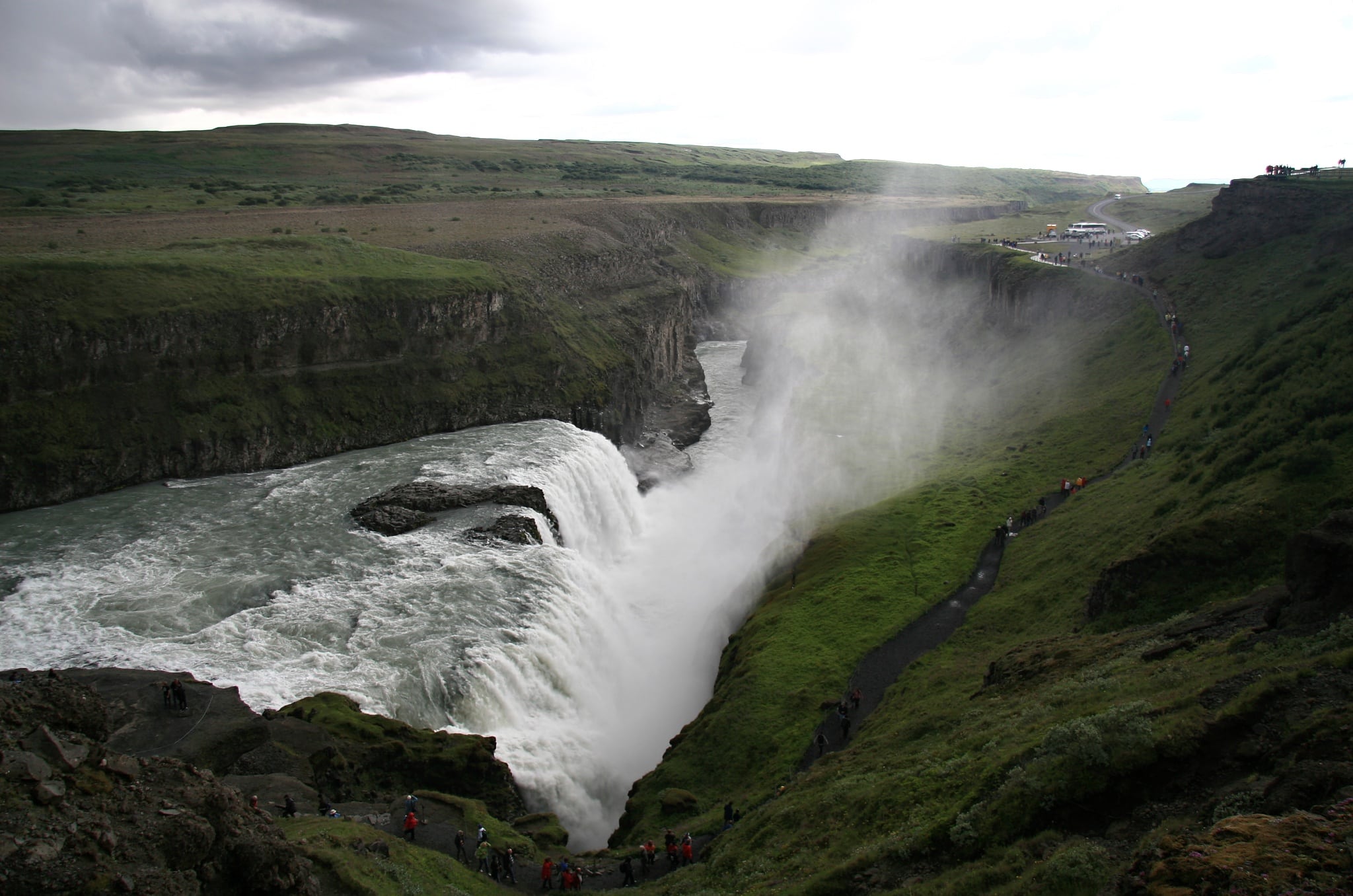 Vodopád Gullfoss, v překladu Zlatý vodopád, leží na řece Hvítá. Je situován na začátek zhruba 2 kilometry dlouhého čedičového kaňonu, do kterého padá voda v dvojitém kataraktu. První je vysoký 11 metrů, druhý pak metrů 21. Zajímavostí je tvar vodopádu, kdy na sebe oba katarakty svírají úhel 90 stupňů. Díky svému tvaru i mohutnosti je vodopád velmi fotogenický, navíc je možné fotit si jej z mnoha úhlů a vzdáleností. Je možné podívat se i těsně k okraji obou přepadů, ale člověk se musí smířit s tím, že suchý se rozhodně nevrátí.