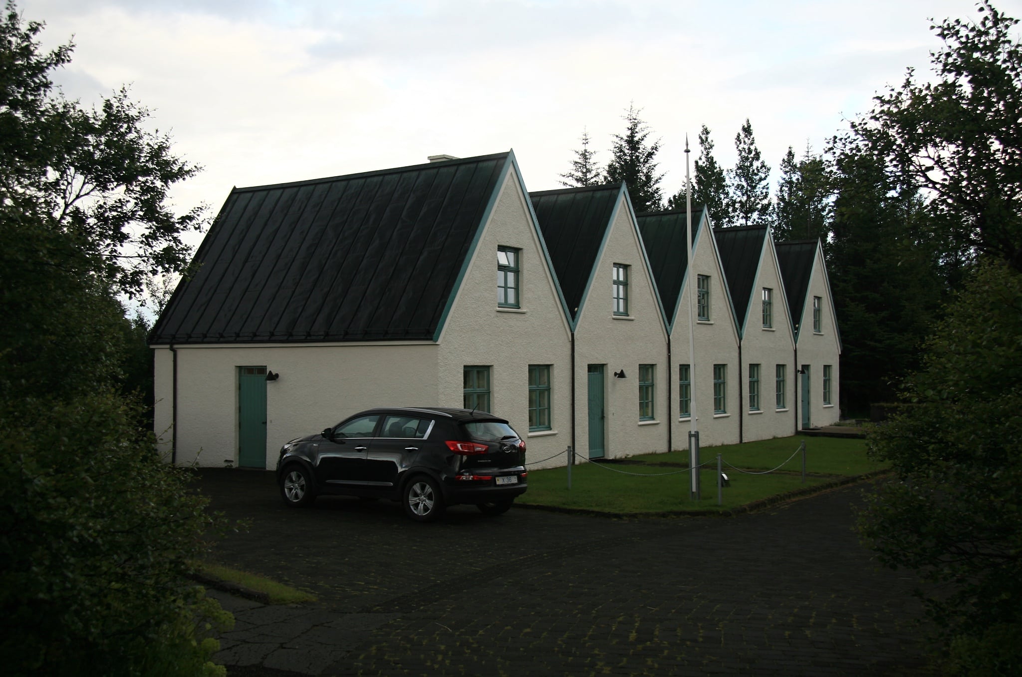 Tím končí dnešní turistický program, ale před námi je ještě jeden důležitý úkol. A sice najít nějaké ubytování, protože stejně jako včera žádné objednané zatím nemáme. V půl desáté tedy nasedáme do auta, cestou se ještě rychle stavíme u turistického centra nahoře na zlomu udělat pár posledních fotek, a pak už vyrážíme přímo směr Reykjavík. Původní plán ubytovat se někde v kempu ve stanu se posléze kvůli protestům mužské části výpravy mění na plán ubytovat se někde v centru v Reykjavíku. První pokus objednat pokoj sice končí nezdarem, ale i díky pomoci ochotného pana za přepážkou prvního hotelu nakonec objednáváme poslední volný pokoj v nedalekém hotelu 4th floor. Hotel je to krásný, ale moc se jeho komfortem neopájíme. Dáváme si rychlou sprchu a pak zalézáme do postele.