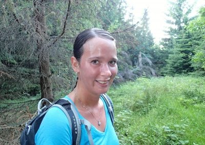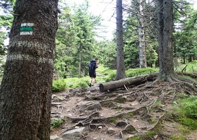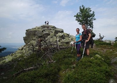 Tam už tušíme, že tato naše výprava skončí úspěchem. Postupně procházíme přes další vrcholy, fotíme památeční fotky. Dáváme si rychlou pauzu na Jelení studánce, ale vidina cíle nás žene kupředu. Obzvlášť Hanka má očividně sil na rozdávání, já jsem na to o poznání mizerněji. Sluníčko začíná pálit, v důsledku čehož budeme mít slušně spálený krk. Potkáváme mnoho výletníků, s některými prohodíme pár slov. Výraz většiny po odpovědi na otázku „Odkud jdete?“ je k nezaplacení:)
