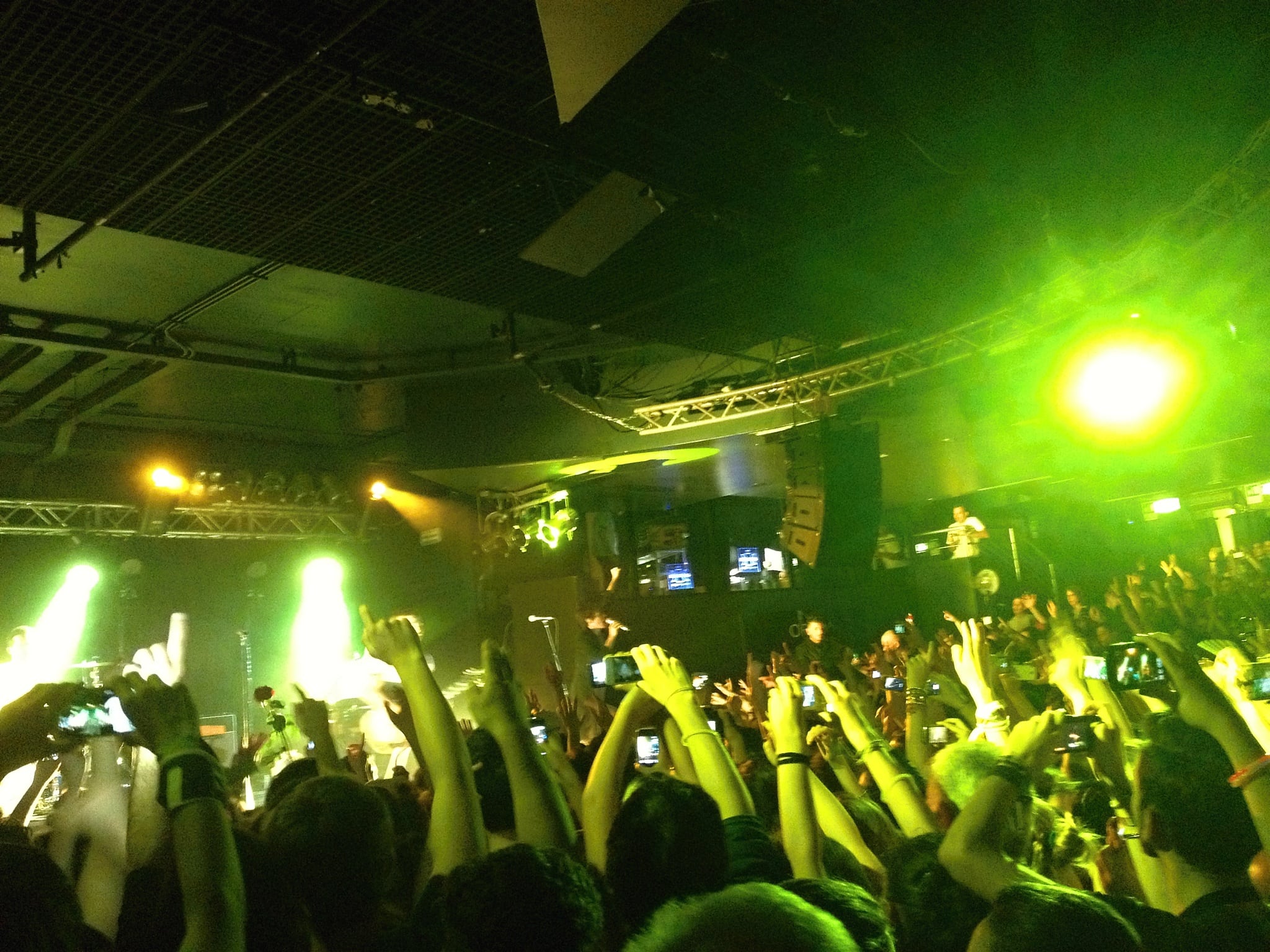 Když se chlapci s Bostonu objevili na pódiu, kravál v klubu byl určitě větší, než dokázala vyprodukovat 747ka startující za oknem našeho hotelového pokoje. Až na výjimky jsme nejen dobře slyšeli, ale i viděli díky tomu, že jsme na začátku koncertu stáli asi 15 metrů od pódia a během postupného poskakování a hemžení se později ještě o pár metrů posunuli kupředu. Nepříjemný byl jen občas hustý les tvořený desítkami horních končetin s fotícím nebo nahrávajícím mobilním telefonem, ale atmorféru to rušilo jen malinko a i my se k porostu také občas přidali.
