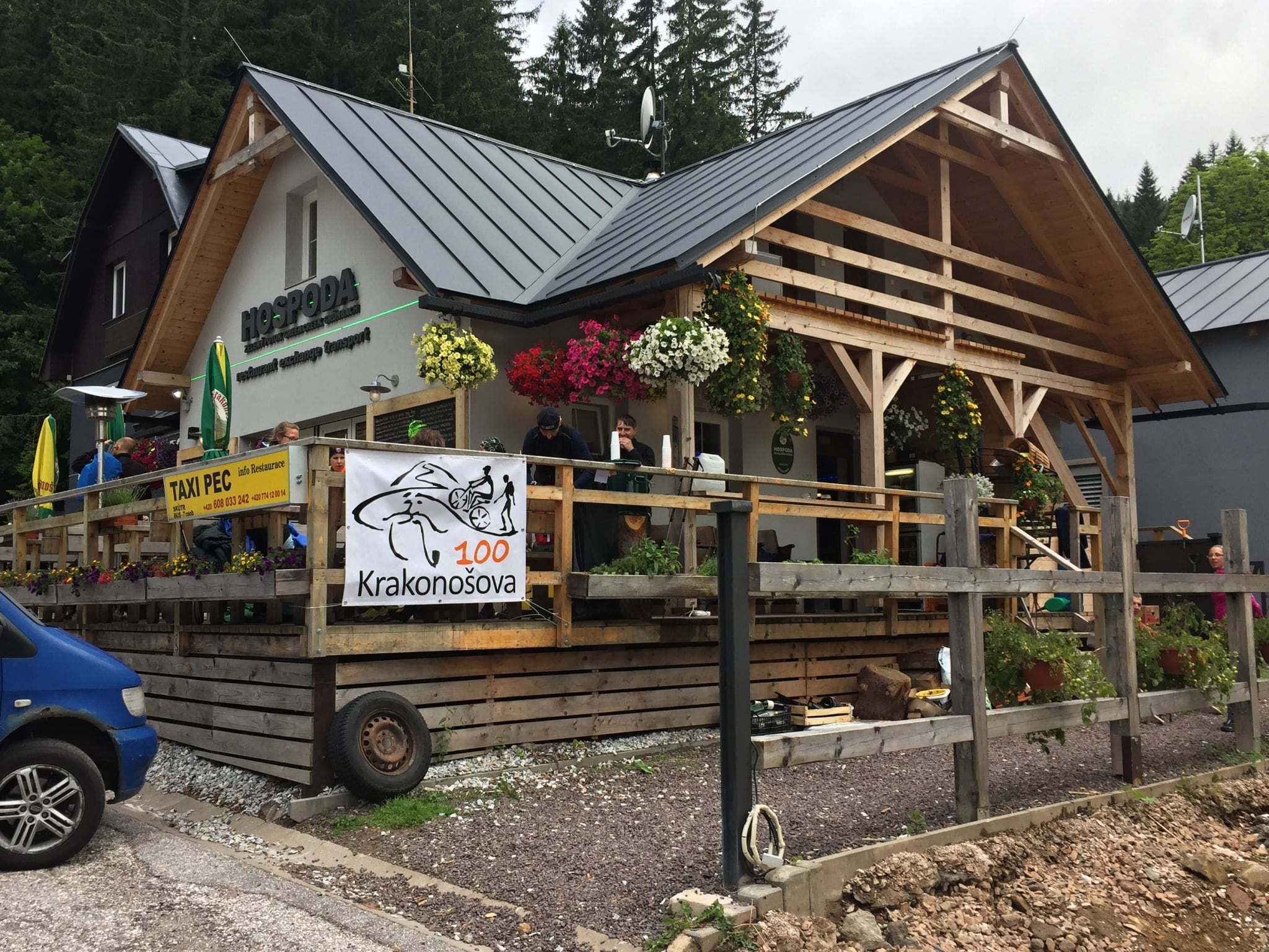 Na kontrole na Pomezních boudách doplňuji energii opět chlebem se sádlem, pořádně promažu chodidla (už začínají trochu pálit a puchýře bych teď rozhodně nechtěl řešit), trochu si odpočinu a pak zase se loučím. Aby se mi šlo lépe, pouštím si do sluchátek hudbu a ve společnosti svých oblíbených zpěváků a kapel si to přes Spálený Mlýn, Janovy Boudy a Velkou Úpu šinu do Pece na poslední kontrolu. Zrovna, když jsem svědkem další debaty ostatních závodníků na téma „můžeme jít podél silnice, když modrá vede tudy?“, kouknu na telefon a tam zpráva od Jirky, kde prý jsem. Ten blázen to fakt dokázal, jeho čas 14:57 je z říše snů. Chvilku přemýšlím, jestli mě jeho výsledek nabudí nebo naopak sejme, ale pak to hodím za hlavu, pogratuluju mu SMSkou a těším se na malinovku.