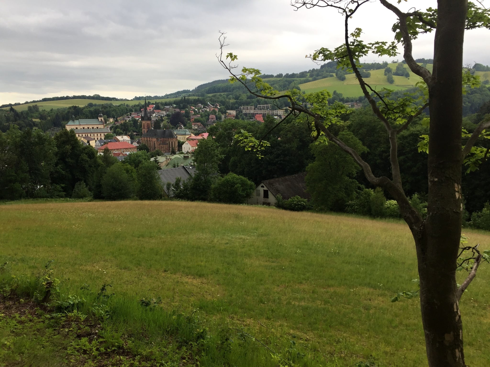 Míjím Dvoračky (ty jsou zdá se otevřené, ale po krátké úvaze je hodlám ignorovat), Ručičky, a pak přes Rýžoviště až dolů do Harrachova. Většina cesty je po asfaltu, tak skoro pořád běžím, abych už byl konečně v suchu. I když to se mi možná splní ještě dříve, protože přestává pršet. V Harrachově pomáhám jednomu bloudícímu najít správný směr a až do sportbaru 007 jdeme společně.