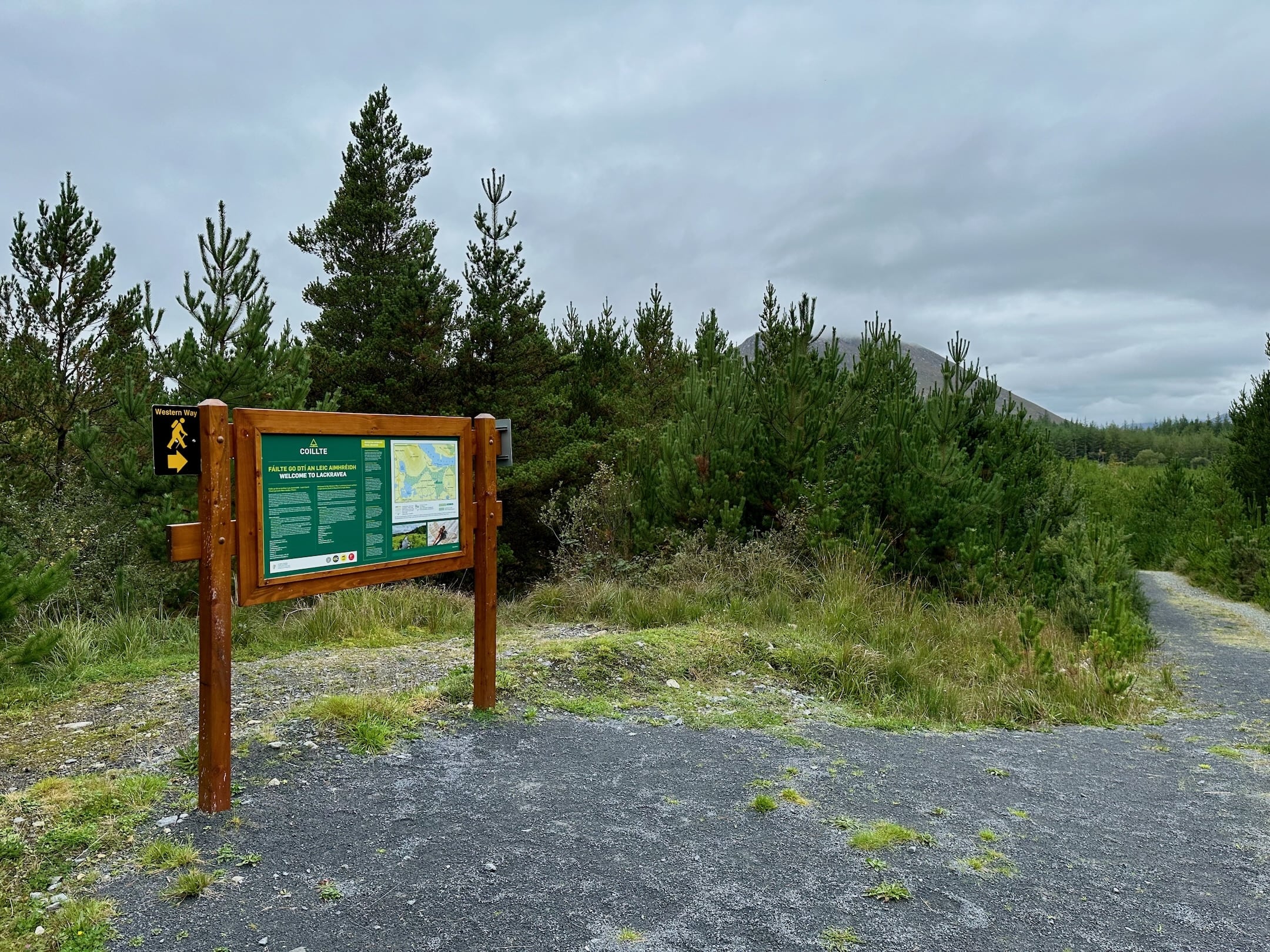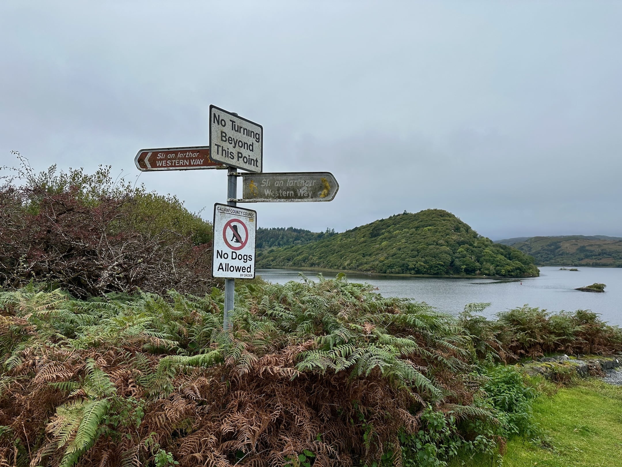 Trochu váhám, jestli si jen nakoupit nebo na chvíli zalézt do místního baru, ale nakonec zvítězí moje vrozená obava z cizího prostředí a zamířím do obchodu. Po nákupu dalších zásob cukru na zbývajících pár kilometrů se vracím kousek zpět, až k další informační ceduli. Tam si všímám nenápadné, ale dost znepokojující informace o tom, že trek bude 28. února uzavřen. Nápis je delší, v angličtině i irštině, ale i s pomocí překladače mi nějak nedává smysl, jednotlivé věty si dost odporují. Pokud je trek uzavřen, proč tady vlastně ta informační tabule je? A proč jsou všude ukazatele? Pokračuji dál po trase, ale uvnitř mám takový svíravý pocit. Při vzpomínce na desítky výstražných tabulí se mi rozhodně nechce lézt někam přes plot z ostnatého drátu. Obzvlášť hned první den na treku…