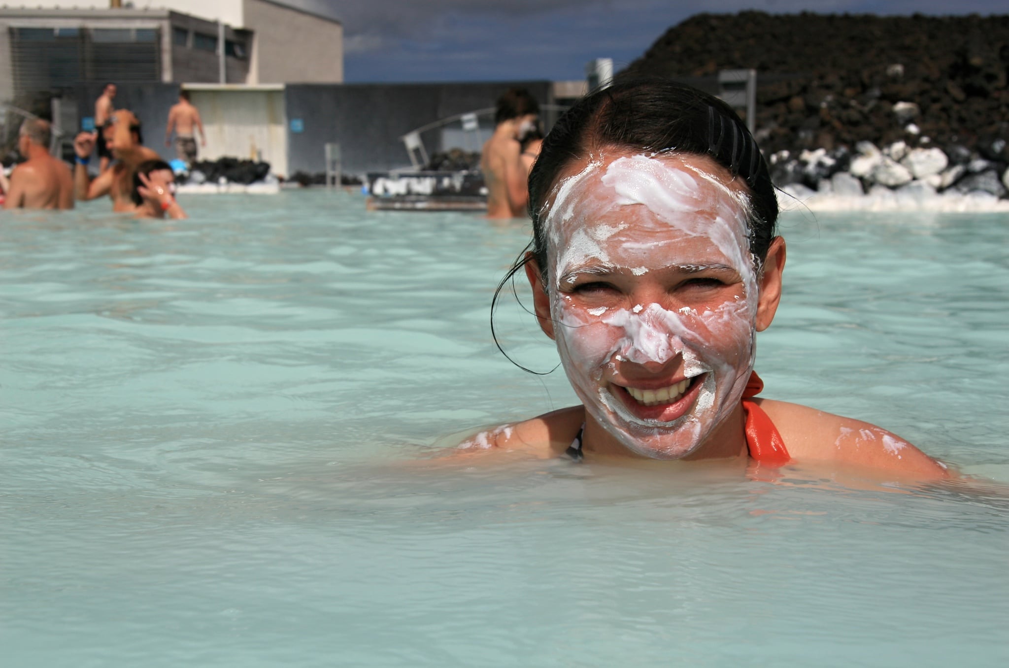 Po příjezdu a zaparkování auta na slušně zaplněném parkovišti jdeme skrz koridor vydlabaný v lávovém poli až ke vstupu do lázní. Kromě nepříjemné fronty nás zaujme především cena, protože základní vstupenka přijde na 40 EURO za osobu. Vzhledem ke skutečnosti, že se koupeme vlastně v odpadu a všude je hlava na hlavě, je to docela slušná komerce. Ale když už jsme tady, tak se to snažíme neřešit. Vystojíme si frontu, zaplatíme a za pár minut jsme po důkladné očistě těla (na Islandu si na to v lázních prý hodně potrpí) u bazénu.