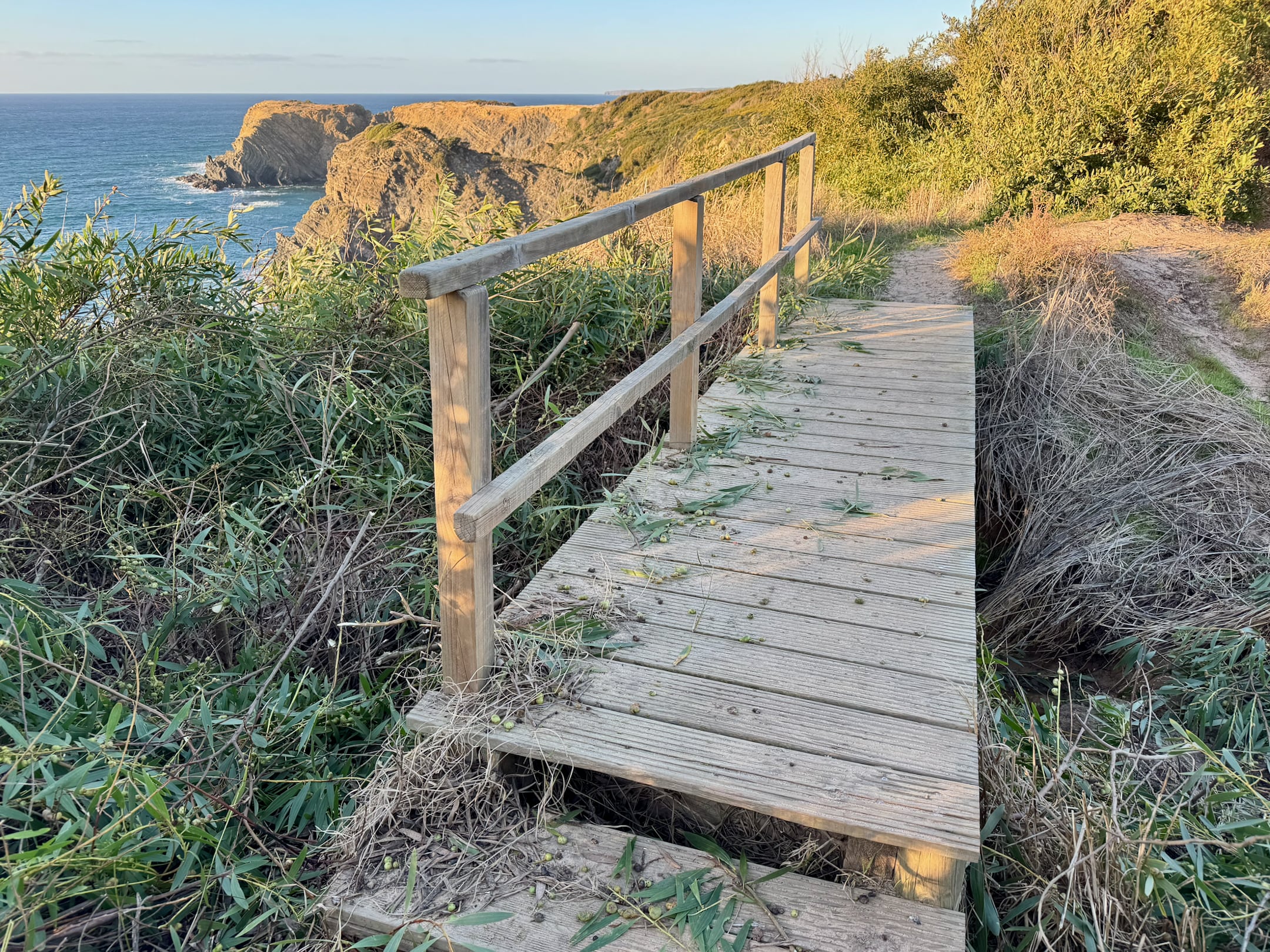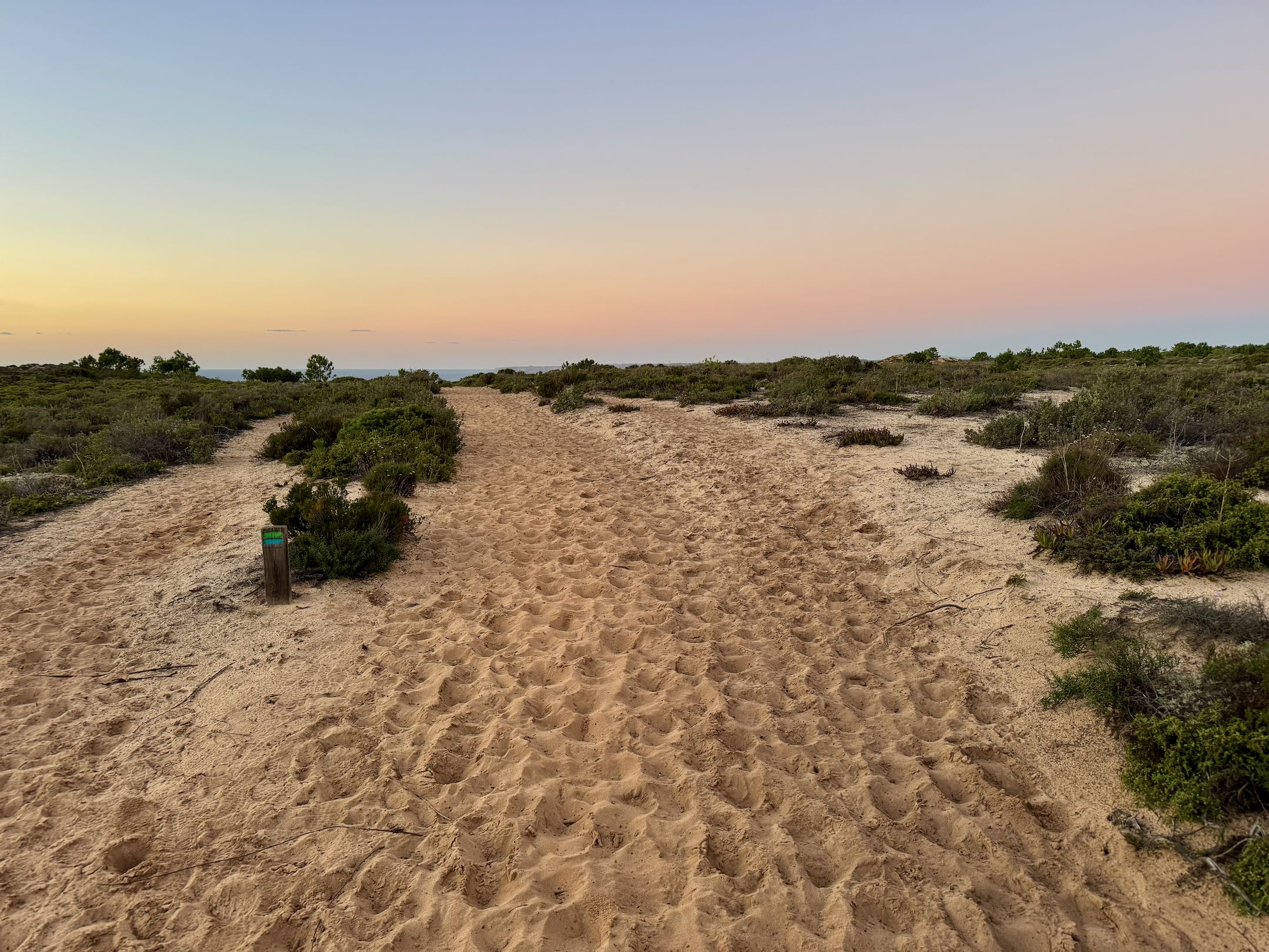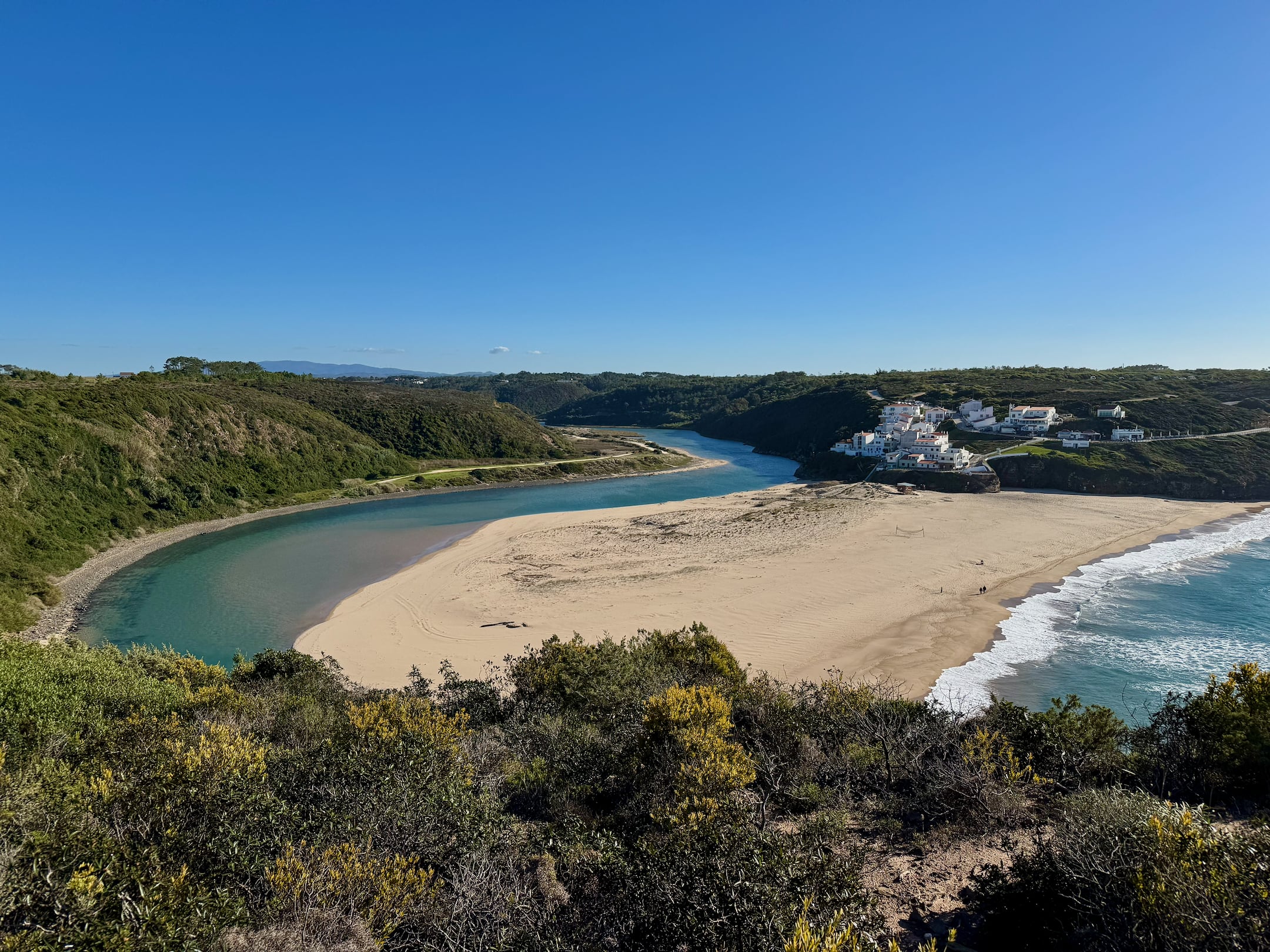 Den 5. — Po dvou odpočinkovějších dnech bych se dnes měl protáhnout zase o malinko víc, mám v plánu ujít skoro 40 kilometrů. Až na výjimky pouze podél pobřeží, na dohled oceánu. Podle mapy by to nemělo být příliš obtížné, největší překážkou asi bude tradičně sluníčko a písek. V plánu je i návštěva jednoho většího městečka jménem Odeceixe, které, stejně jako Aljezur, leží několik kilometrů ve vnitrozemí. Proti proudu řeky Seixe. Tak vzhůru na cestu, jinak tu zmrznu…