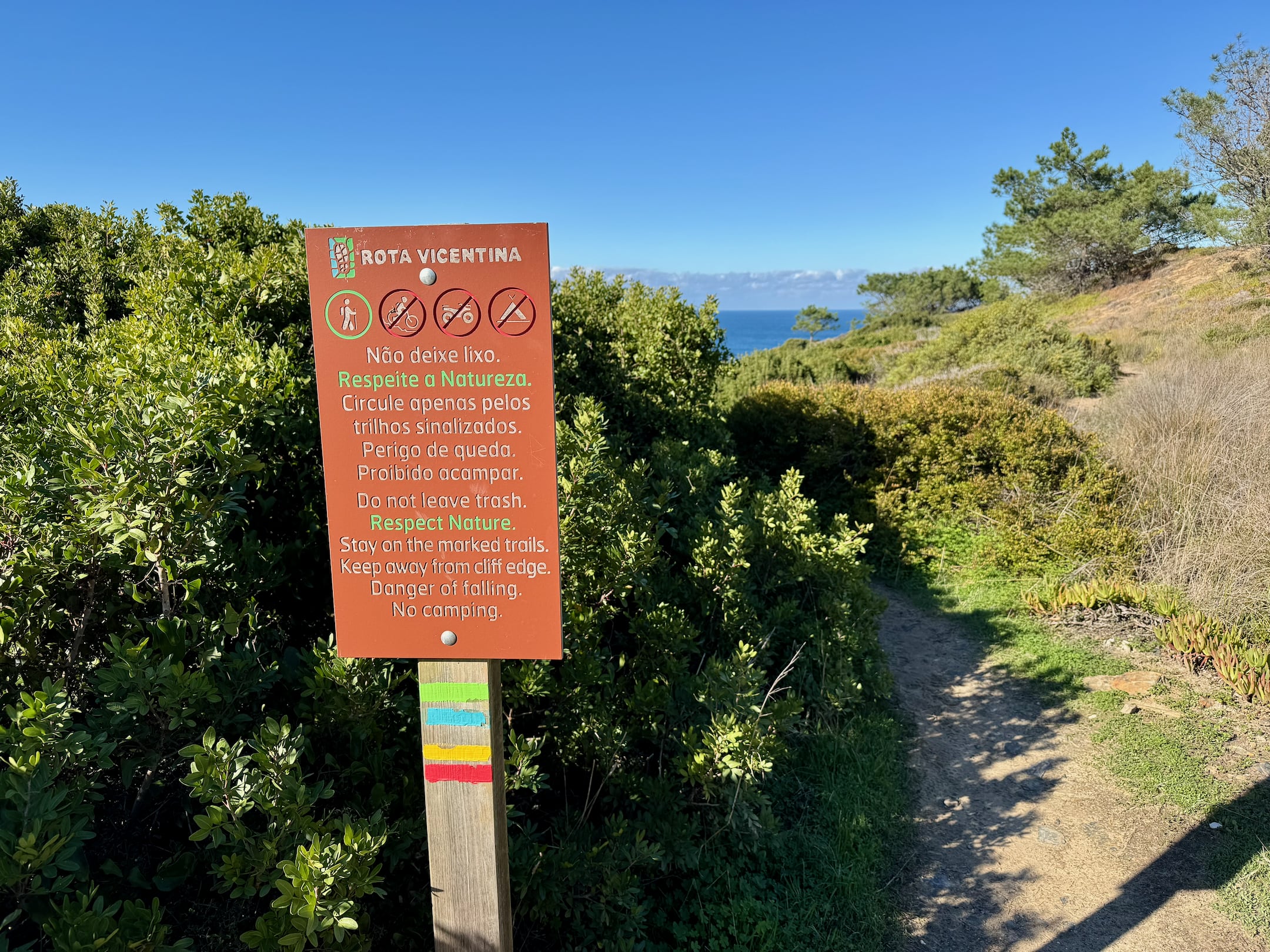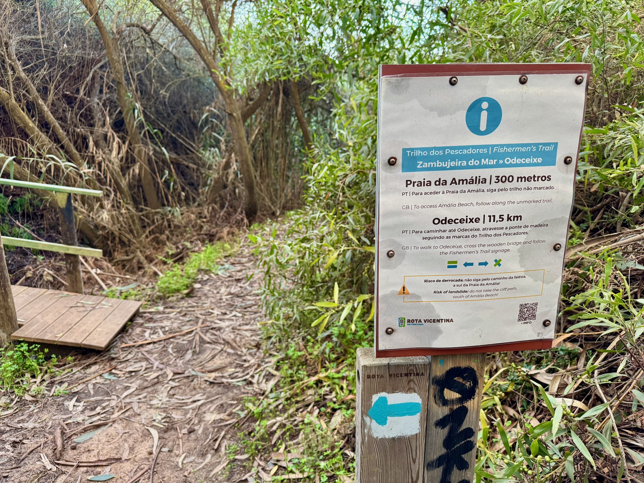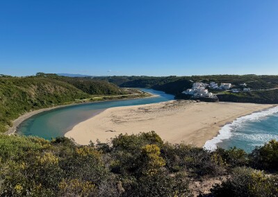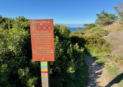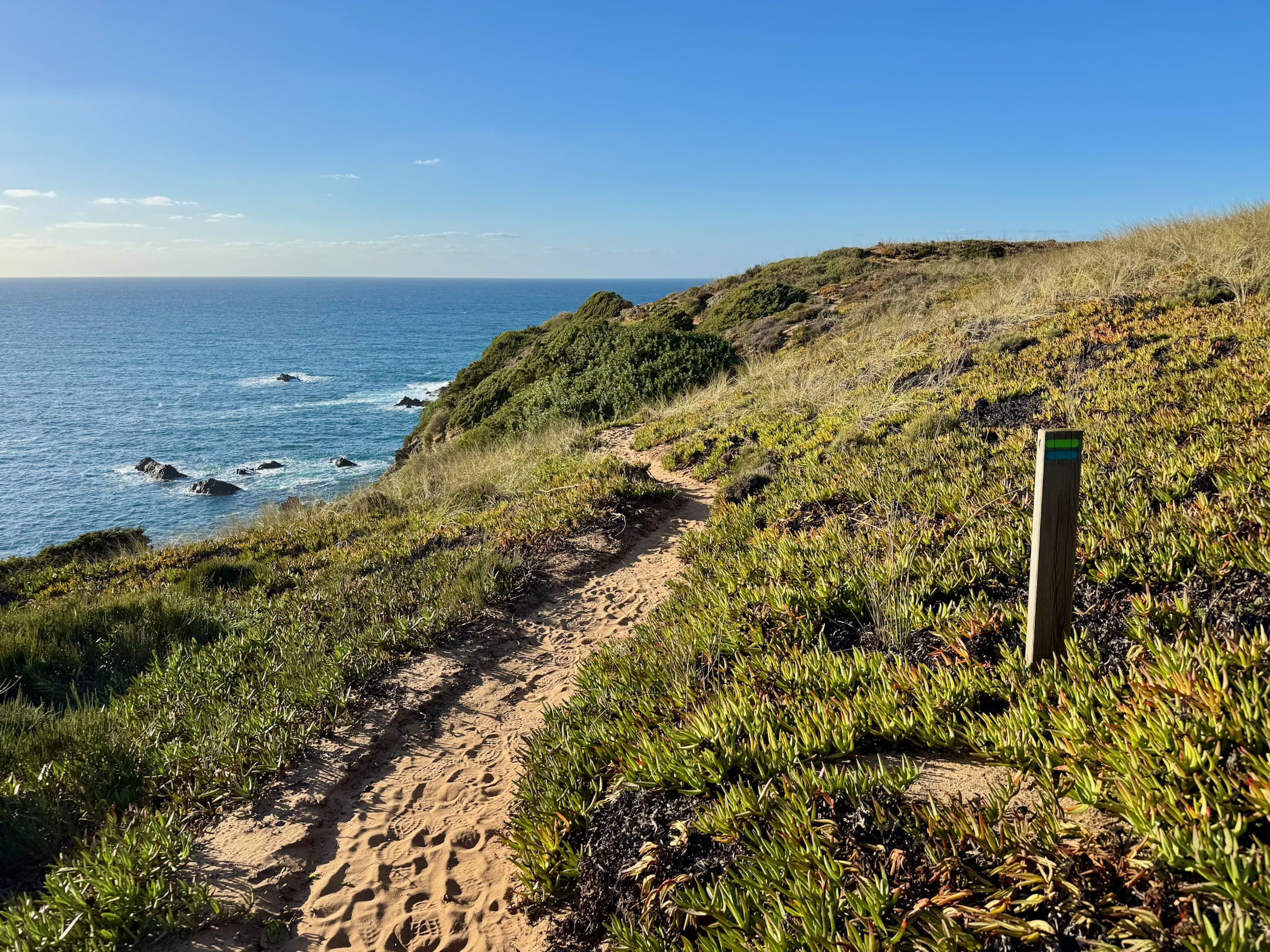 Den 5. — Po dvou odpočinkovějších dnech bych se dnes měl protáhnout zase o malinko víc, mám v plánu ujít skoro 40 kilometrů. Až na výjimky pouze podél pobřeží, na dohled oceánu. Podle mapy by to nemělo být příliš obtížné, největší překážkou asi bude tradičně sluníčko a písek. V plánu je i návštěva jednoho většího městečka jménem Odeceixe, které, stejně jako Aljezur, leží několik kilometrů ve vnitrozemí. Proti proudu řeky Seixe. Tak vzhůru na cestu, jinak tu zmrznu…