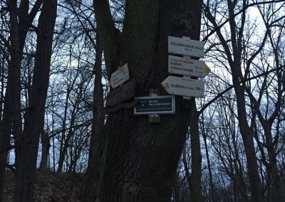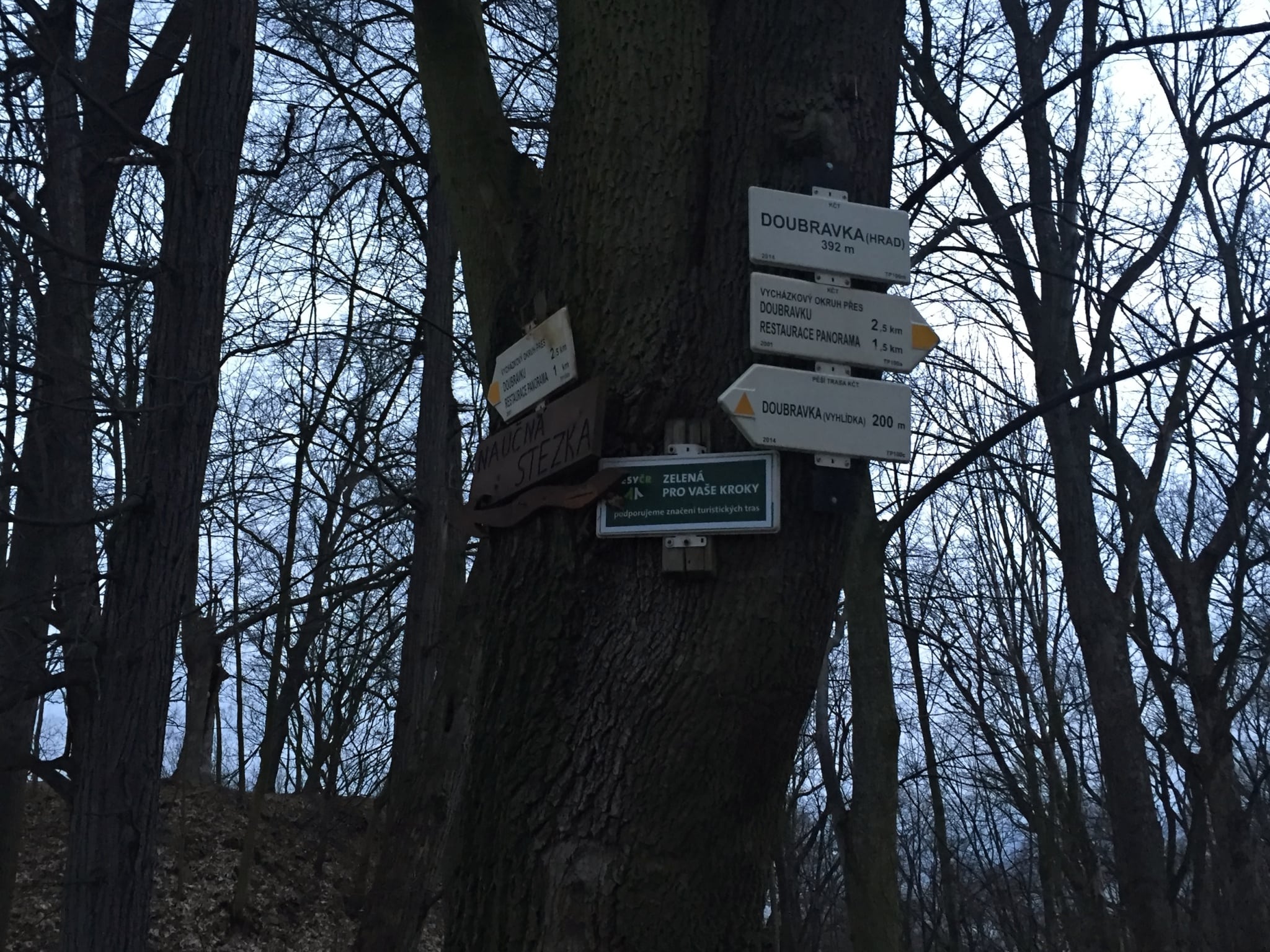 Začíná svítat. V části Teplic zvané Sobědruhy je několik rybníků a také čtvrtá kontrola. Kontrola oranžovým fixem proběhne bez problémů, ale podmáčený terén má za následek poněkud nepříjemné čvachtání v botách. Opět blahořečím ponožky z Merina, nohy jsou sice mokré, ale po několika minutách zase příjemně v teple. Navíc se na dalších kilometrech zase zahřeji, začíná se stoupat k hradu Doubravka. Jako malé zpestření při tom všem šlapání (do kopce) se jeví polonahý německý „turista“, který je ve svém autě schovaném za polorozpadlou budovou v živé „diskuzi“ s blonďatou „stopařkou“, a který určitě nechápe, kde se tady v sobotu v 6 ráno bere tolik lidí…