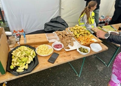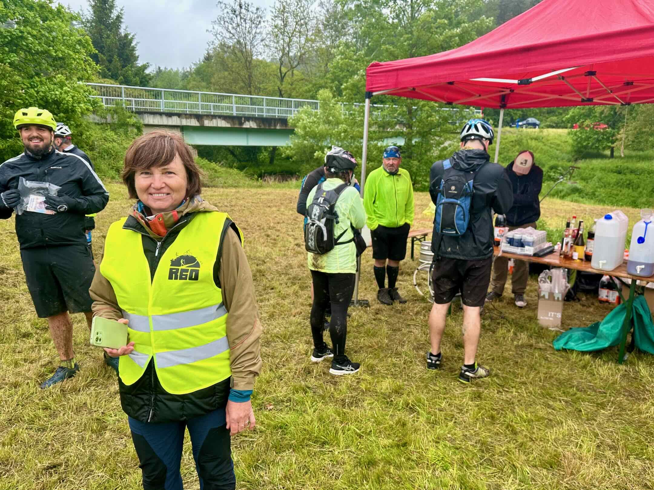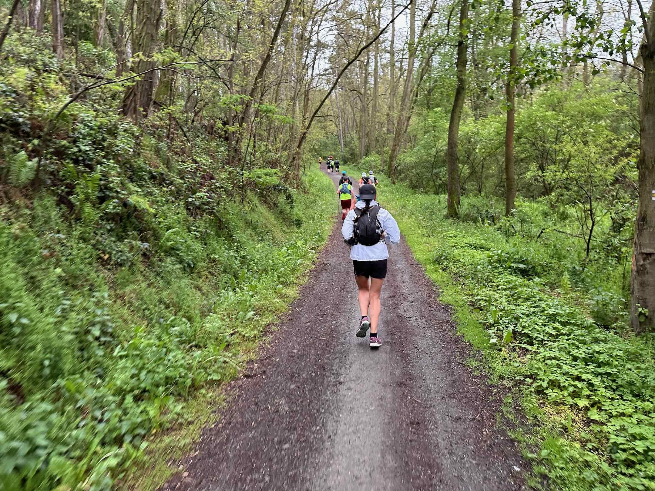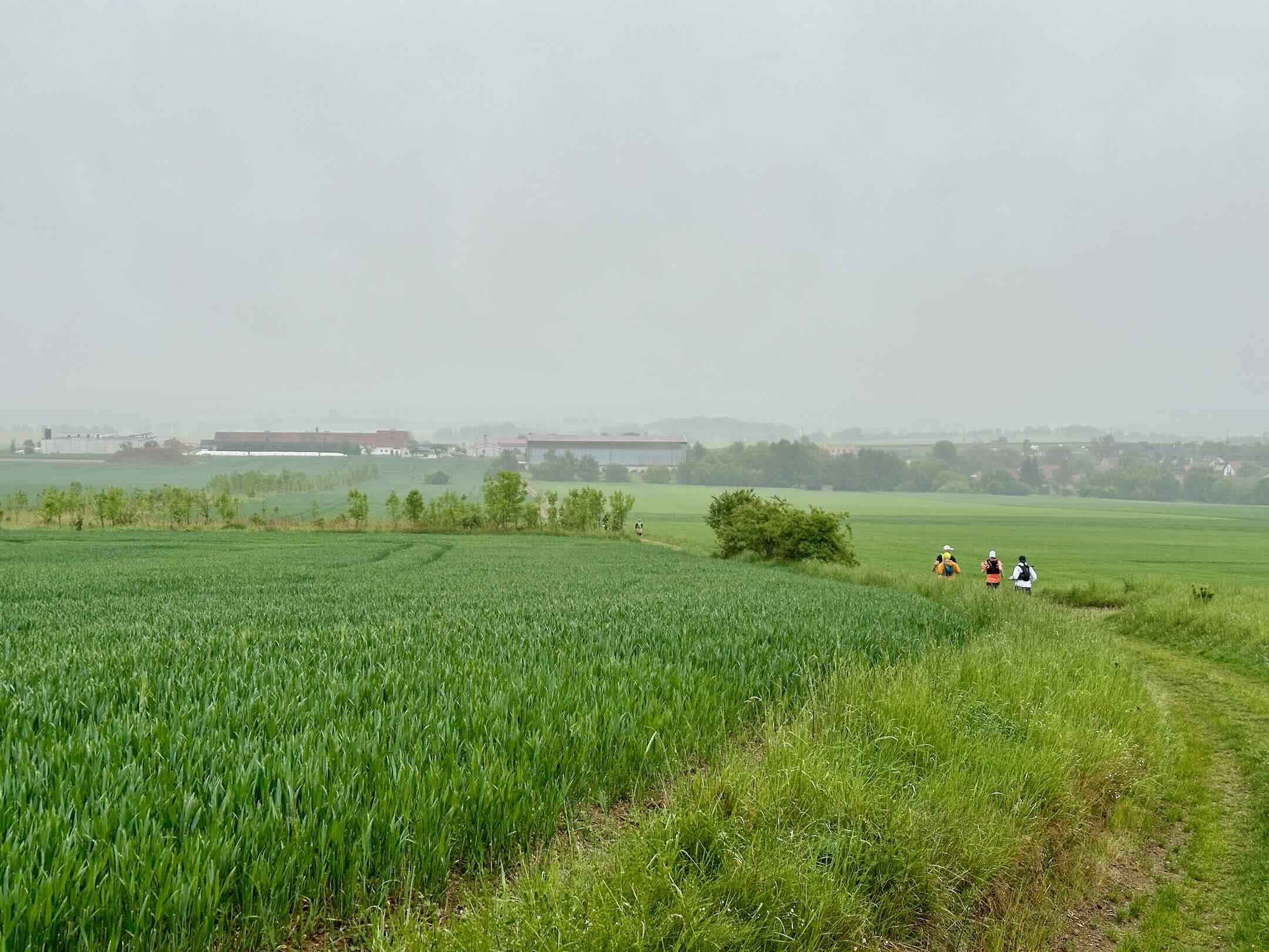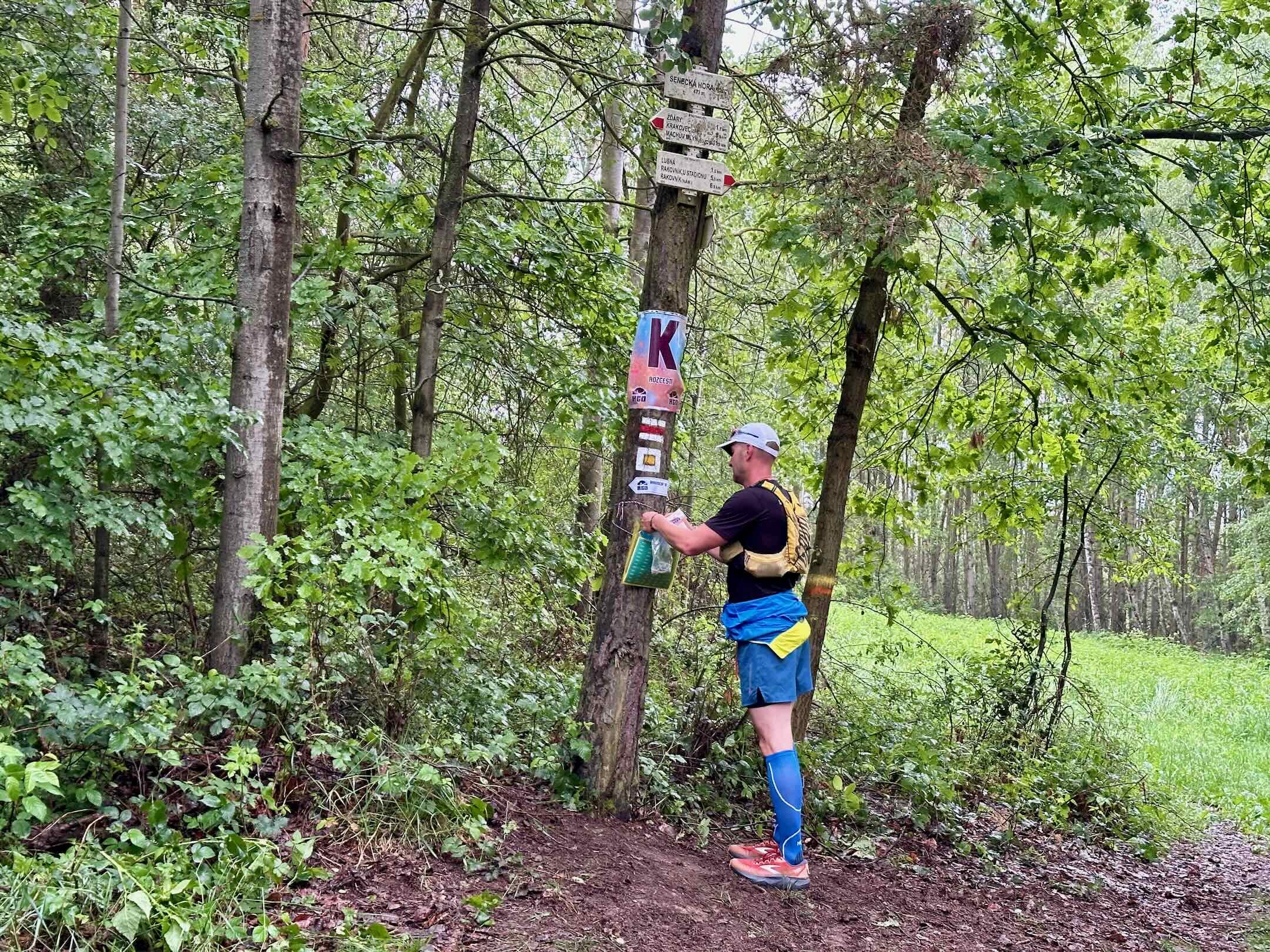 Na sedmé kontrole se na mě opět zubí Olaf. A co prý tu dělám tak brzo, jsem nějaký rychlý! Během snímání QR kódu na mé kartičce se trochu bavíme, jeho nadšení a „pracovní“ vytížení na pochodech je prostě neuvěřitelné. Ale poslední dobou prý má až moc práce v zaměstnání, tak to je čím dál tím složitější najít na všechno dost času. Na rozloučenou mi prozradí, že jsem aktuálně mezi stovkaři na šestém místě. Wow! To si dám líbit! I proto odmítnu nabídku na polévku a s proteinovou tyčinkou v ruce po krátké rozlučce mizím v dešti. Já snad ještě začnu závodit…!