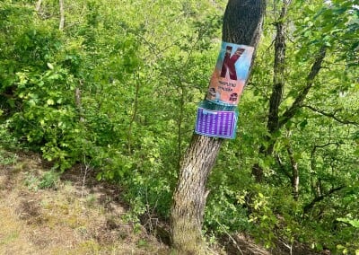 Kousek před rozcestím Marek přichází čas na letošní novinku na trase. Z nějakého důvodu už se nejde na Čertovec, ale na protější kopec zvaný Dudácká jáma. V porovnání s předchozími ročníky je tak letošní trasa o zhruba 1500 metrů delší a s o pár desítek metrů vyšším převýšením. Ale jinak je to změna vesměs příjemná – trasa je sice náročná, ale nejde do extrému a i cesta dolů je docela běhatelná. U kontroly na Dudácké jámě se navíc pozdější účastníci mohou setkat se skutečným dudákem! Já jsem tu ale asi moc brzo, takže si jen v klidu a tichu nalepím do kontrolní karty další samolepku a bežím dál.