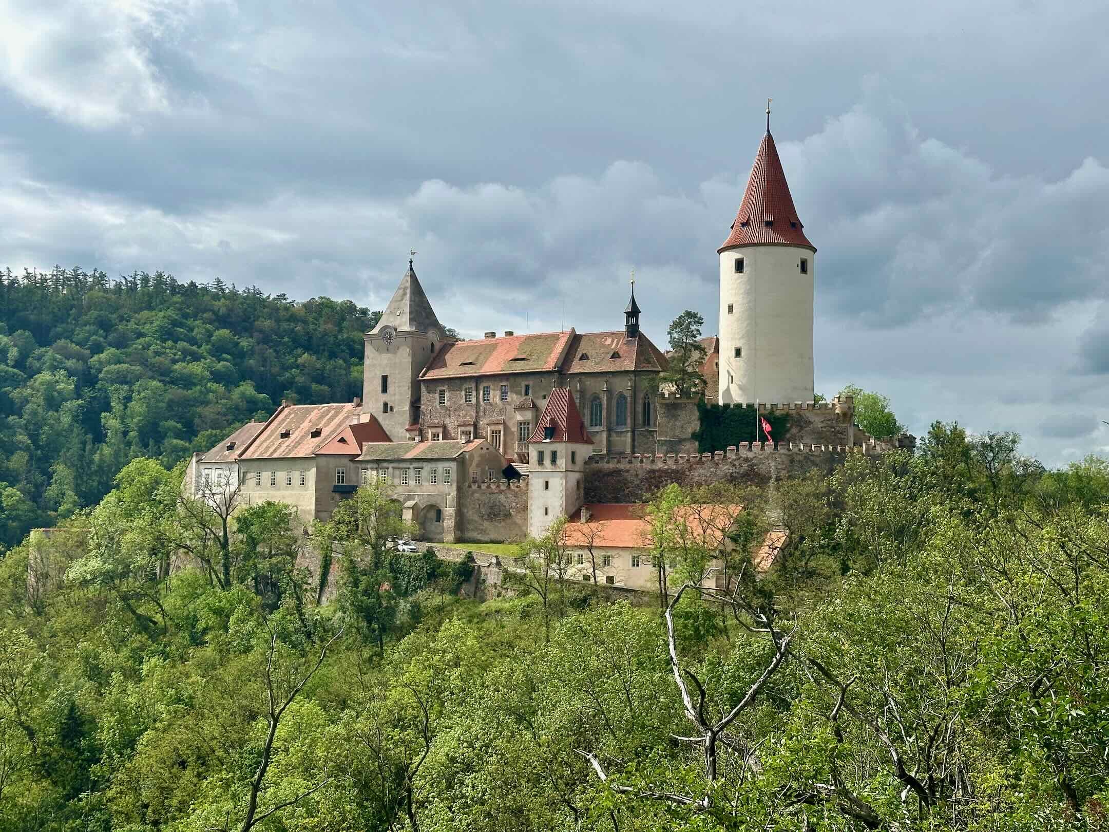 Výstup na kontrolu číslo 13 nazvanou Vyhlídka Paraplíčko je celkem v pohodě, jen začínám registrovat, že je vážně teplo. Po vrstevnici dostanu možnost proběhnout se kolem Křivoklátu, a protože na rozdíl od loňska blbě neodbočím, pořídím si i pár krásných fotek. Ale focení už není taková zábava, radši bych už byl v cíli. Křivoklátem proto více méně prolétnu (pokud se tak mému sípání do kopce dá říkat), lépe mi to jde v chládku mezi stromy přírodní rezervace Brdatka. Loni jsem tu začal nabírat výraznou ztrátu, letos to zatím se silami vypadá mnohem lépe. Mé tempo je s loňskem nesrovnatelné, souvislý běh to sice není, ale zvládnu běžet i relativně dlouhé úseky. Na další kontrolu na autobusové zastávce Písky tak přicházím v luxusním čase 10:26.