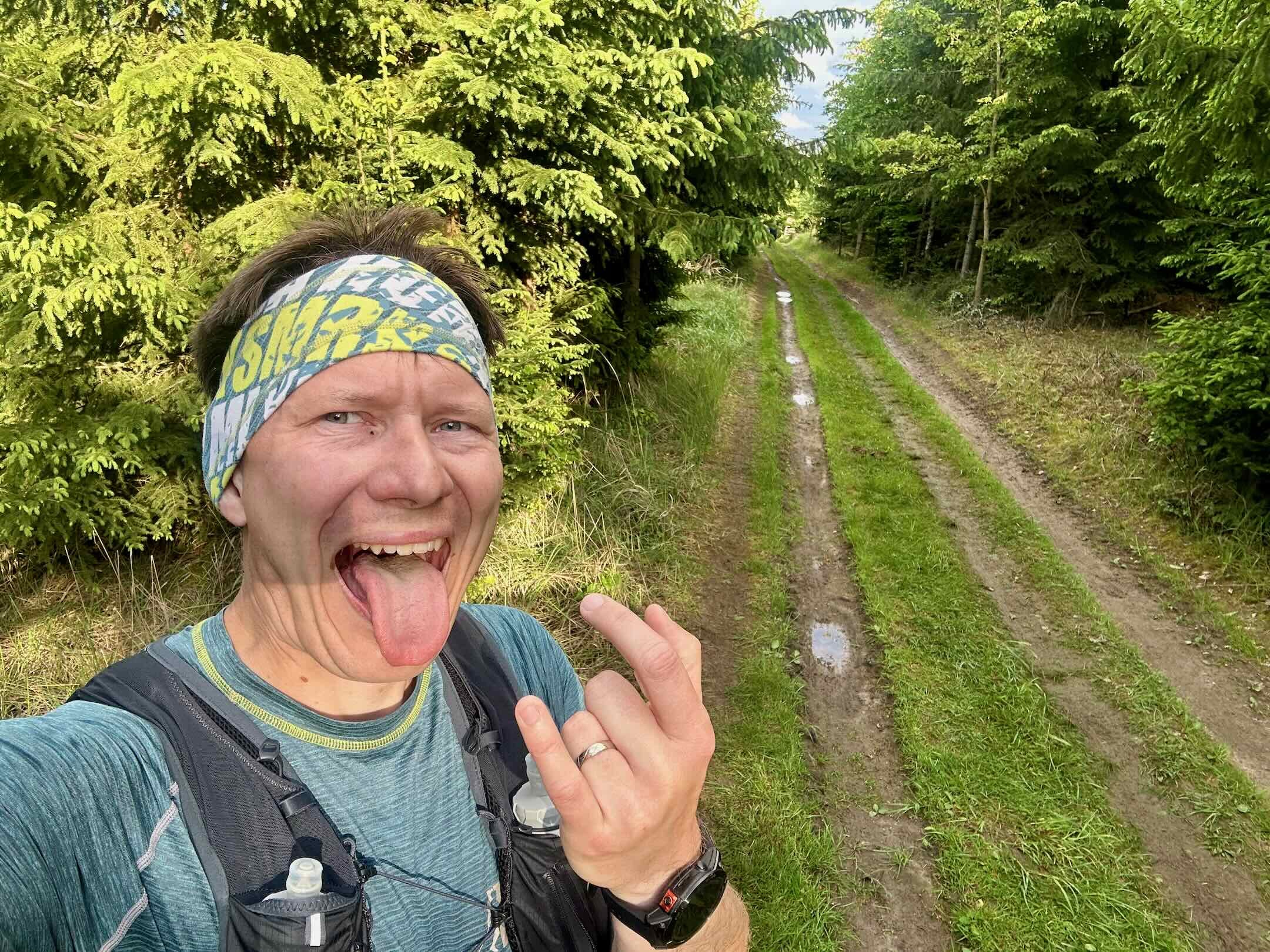 Nemýlil jsem se. Na občerstvovačce jsem sám, dvě dámy mající to tady na povel se schovávají pod přístřeškem, všude mokro a pošmourno. Sice se i tentokrát usmívají, ale není to ono. Na druhou stranu v polovině závodu mám naprosto snový čas a nechci si ho pokazit. Během pár minut pod střechou si stihnu doplnit vodu i energii, a zrovna ve chvíli, kdy se ke kontrole blíží můj dánský kamarád, dávám všem sbohem a s plechovkou Bakaláře v ruce utíkám dál. Tedy jdu, pivo se za běhu moc pít nedá… 🙂