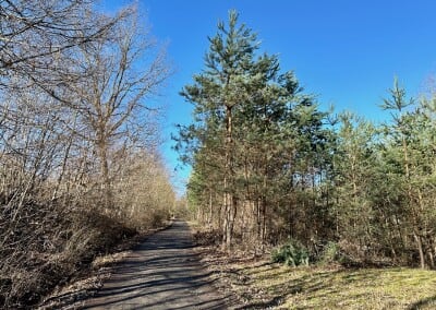Kousek za železničním přejezdem pokračuji po červené značce a začínám šplhat do kopce vedoucího na Oleško. Cestou potkávám spoustu turistů. Jak je krásně, na procházku přírodou jich vyrazily davy. Z vyhlídky si fotím si Vltavu v Davli a než dofuním na rozcestník Oleško značící konec stoupání, mám dopito. Což se brzy ukáže jako problém – více jak litr tekutiny v žaludku nedělá moc dobrotu a tělo si s tím nějak neumí poradit. Je mi blbě, bolí břicho, můj postup se výrazně zpomaluje. Lehce vyklusávám jen z kopce, a přitom by se tady běželo tak krásně!