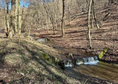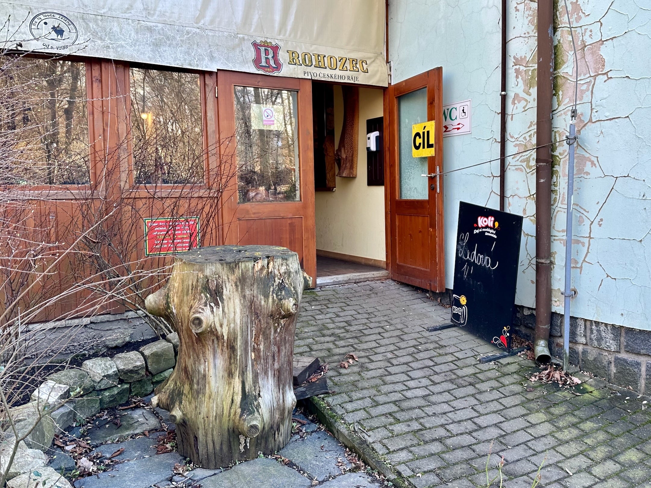 Na další živou kontrolu je to pro změnu do kopečka podél Zvolského potoka. Obecně dneska trávím na břehu vodních toků poměrně dost času. Kontrola má být v obci Zvole u rybníka v hospodě U Rybníka. Ale trochu zmatkuju, cedule žádná a venku na terase se na mě taky nikdo nevrhá s razítkem. Pak si všimnu pána sedícího u piva, jak mi ukazuje, že mám jít dovnitř. A skutečně, hned u vchodu je malý stoleček, kde vytoužené razítko dostanu a můžu běžet dál.