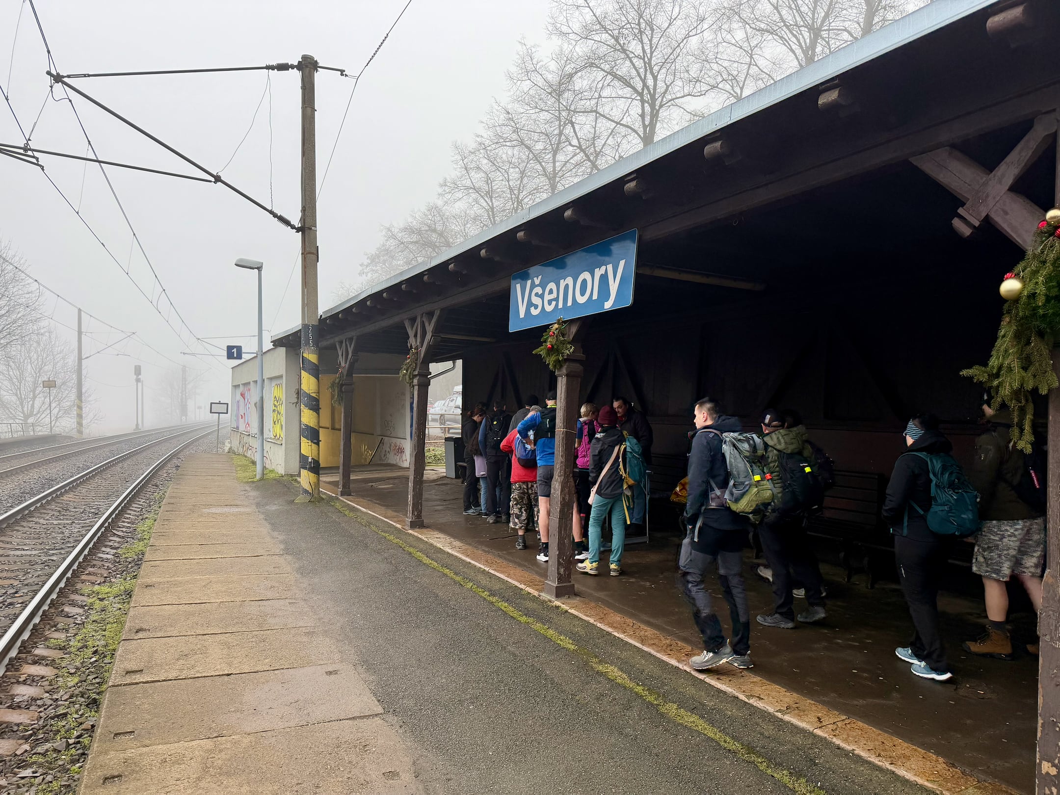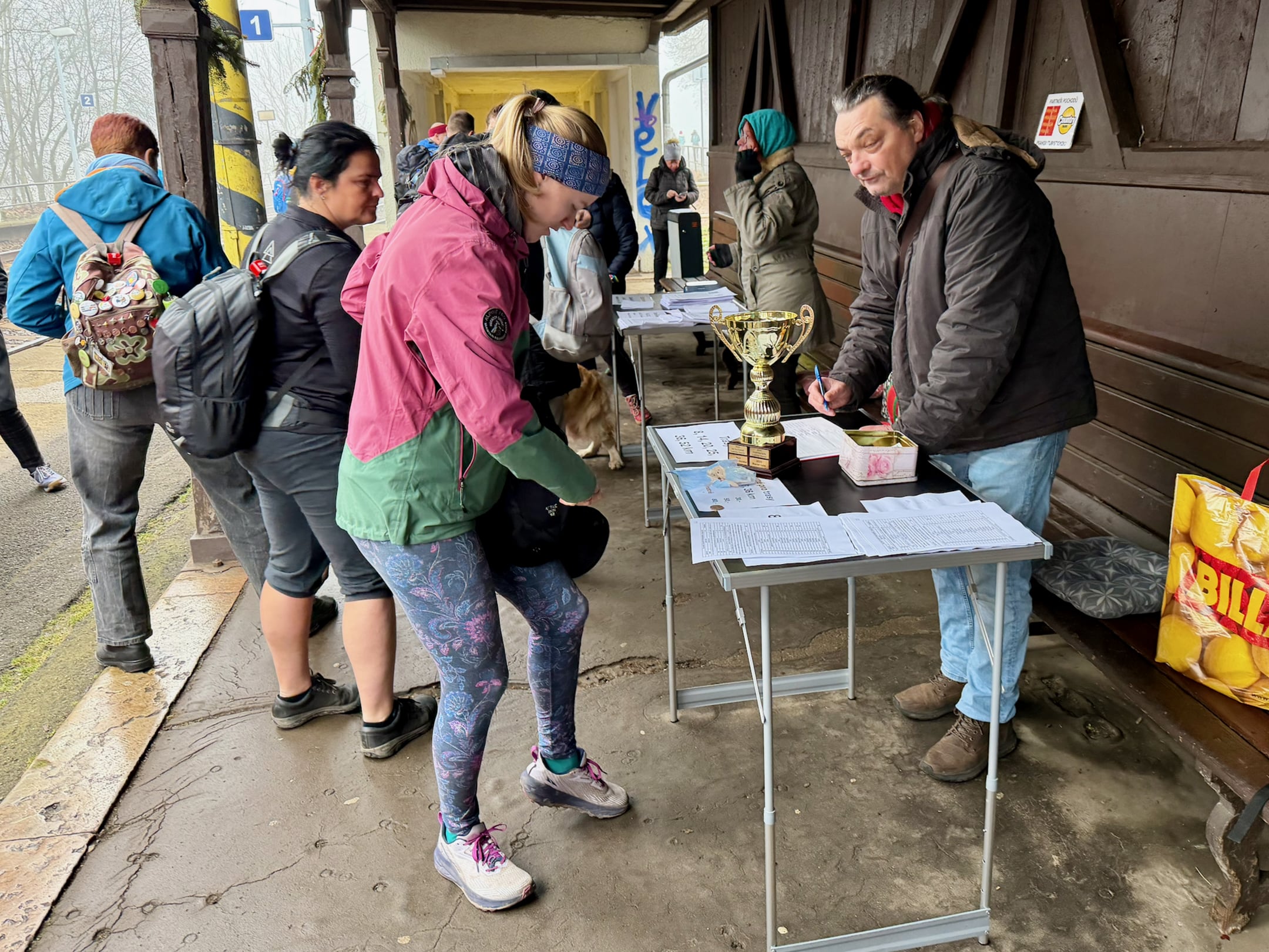 Start závodu byl plánován po příjezdu vlaku od Prahy, kterým se měla dostavit převážná část startovního pole. Vzhledem k (ne)očekávanému zpoždění nakonec vlak dorazil asi o 25 minut později, během kterých jsem se zahříval rozcvičkou. Byly asi 2 stupně nad nulou, jinak bych zmrznul. Díky registračnímu stolečku jen pro závodní padesátkaře bylo pár minut po příjezdu vše zaregistrováno a my se mohli přesunout na start.