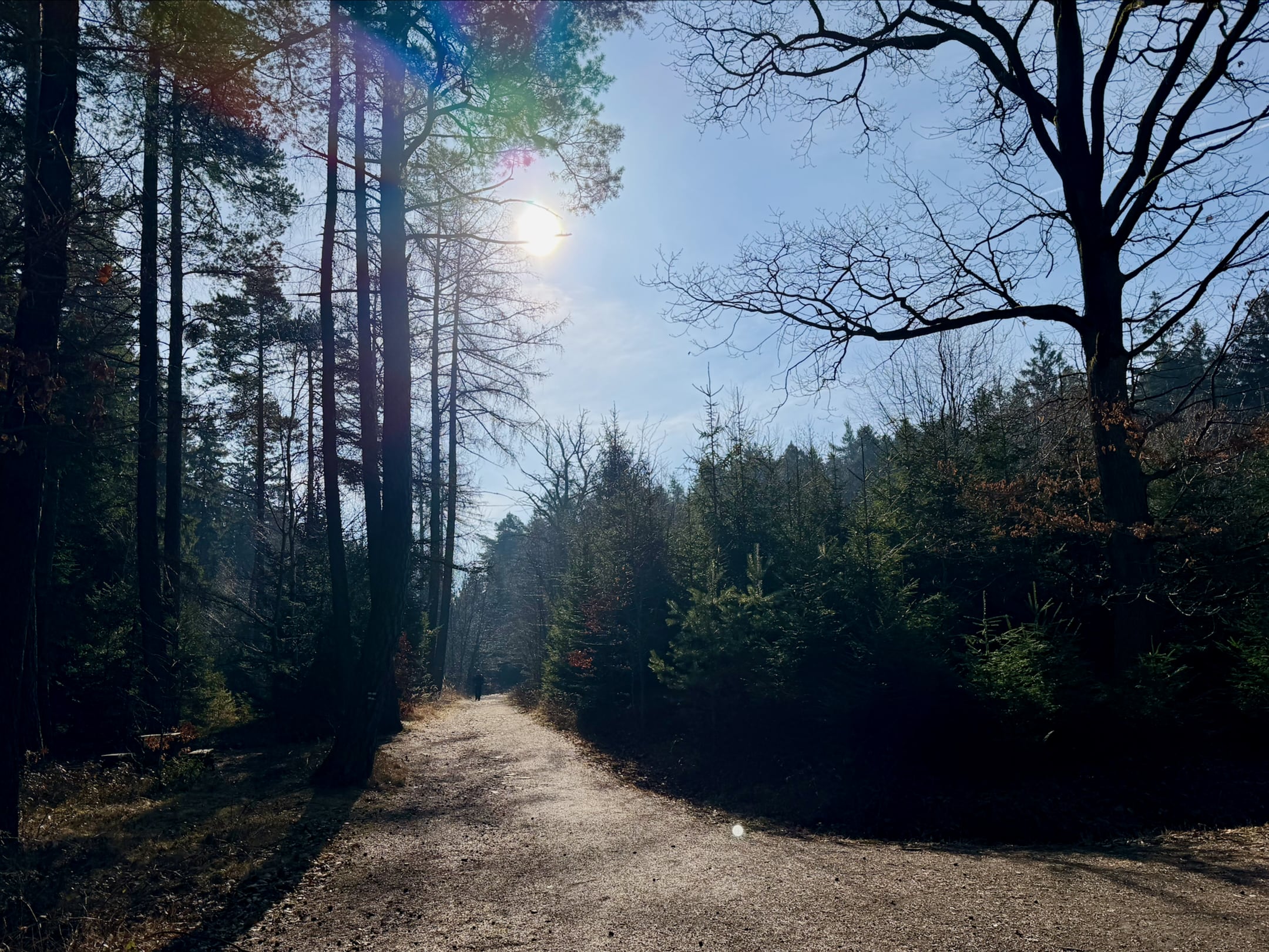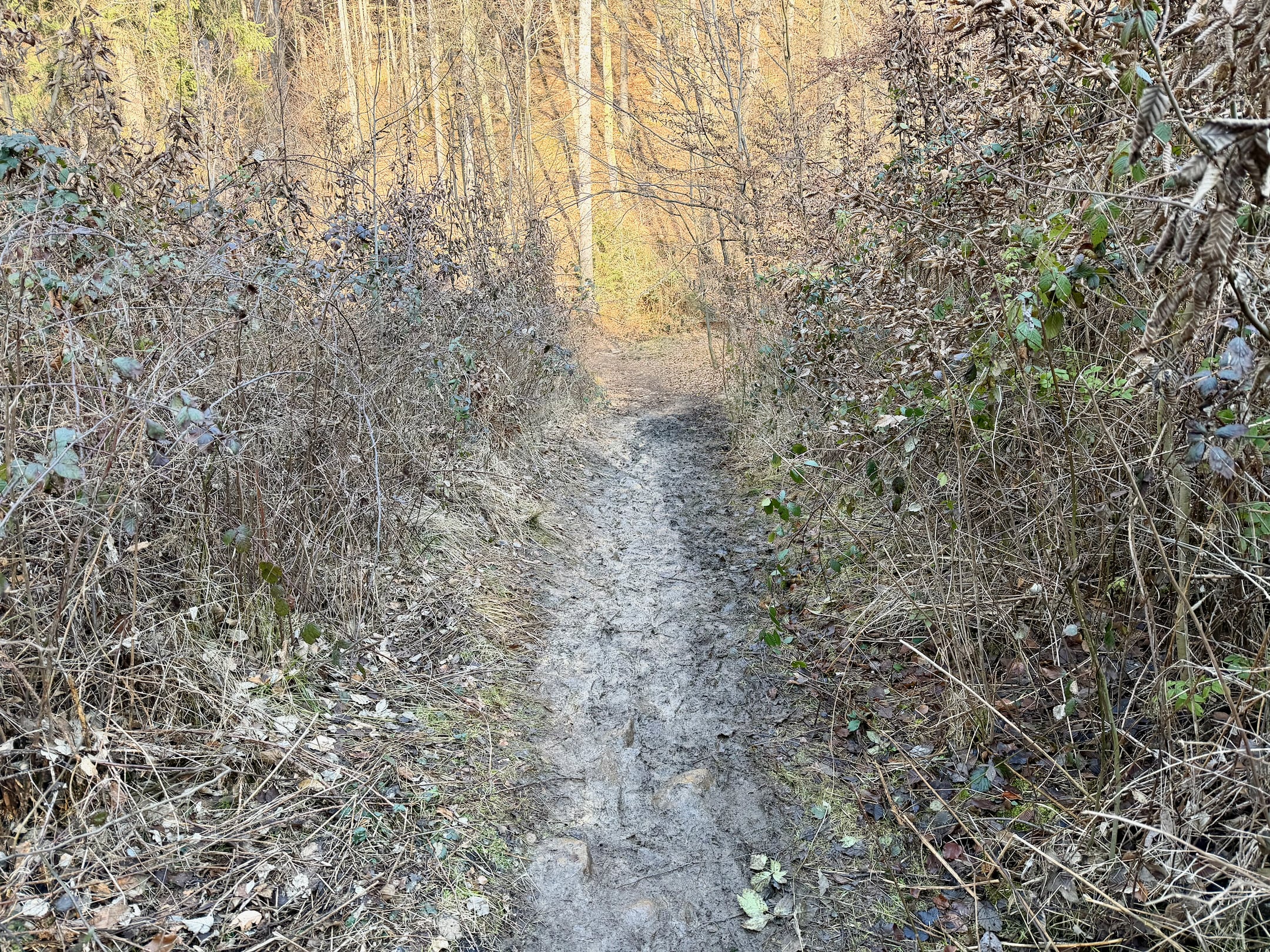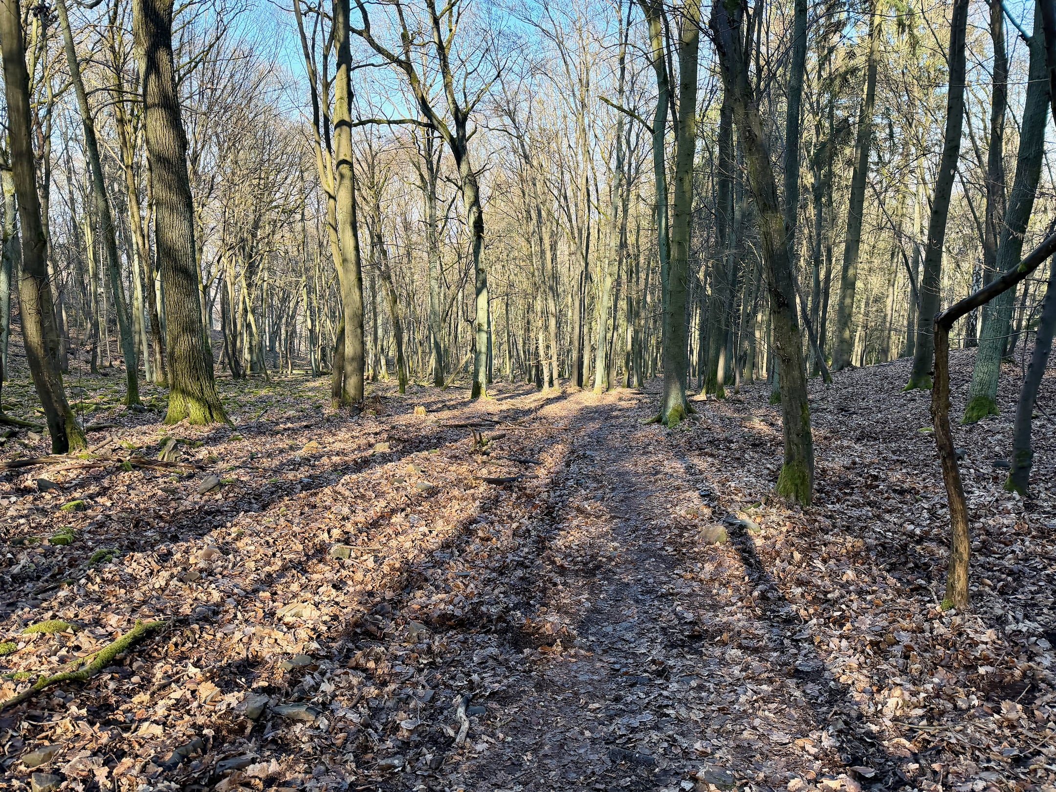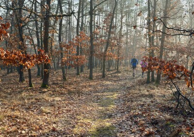Trasa je zatím ideální, většina lehký trail, minimum asfaltu, žádná divočina. Bláta je také málo, na konec února určitě. Celkově je počasí jak malované, běžím, kochám se, užívám si to.