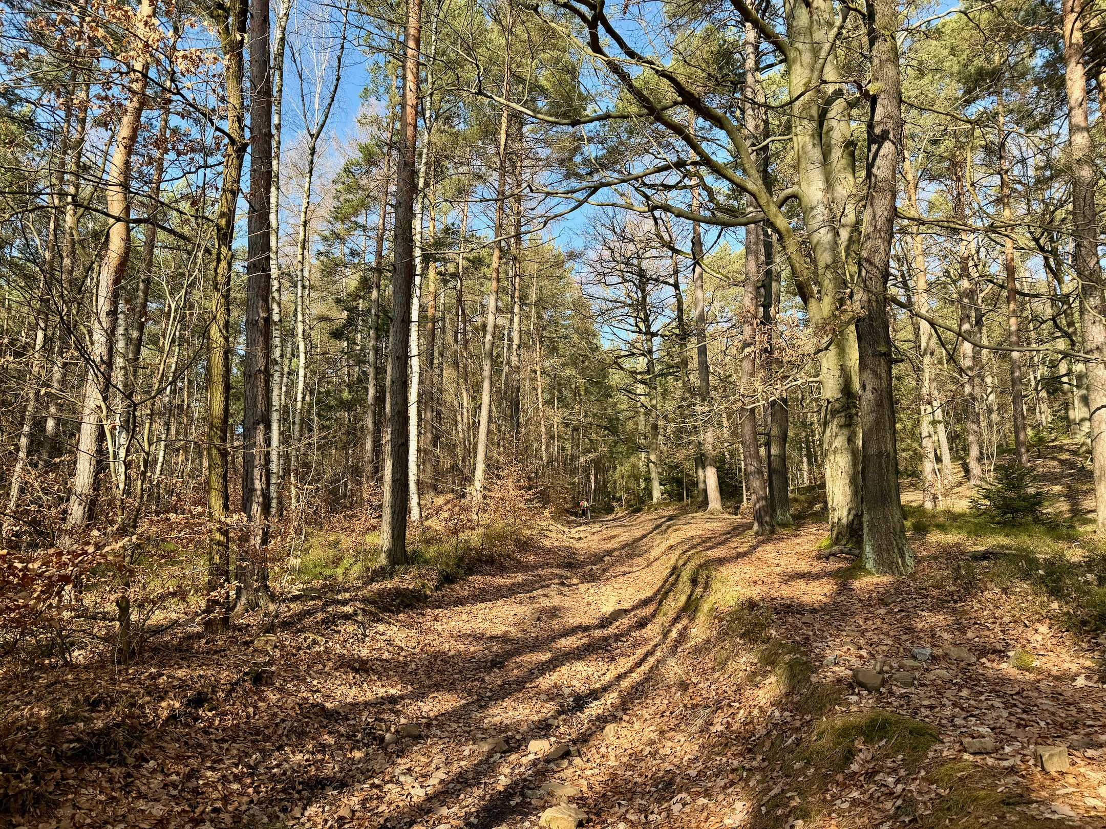 Krásné počasí přilákalo do přírody spoustu turistů, ale místa je tu dost, nijak mi to neirituje. Chvilku vyklusávám do mírného kopce, pak se cesta stáčí a vede mě na Skalku nad Mníškem pod Brdy.