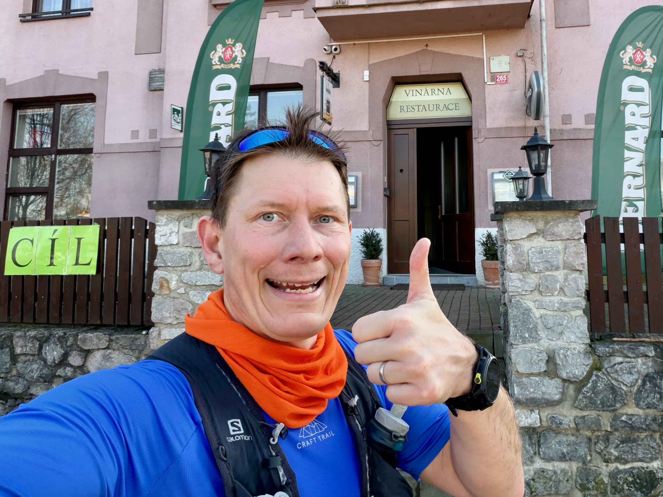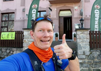 Otevírám dveře a vcházím do restaurace hotelu Grand. Vypínám hodinky a jdu se hlásit ke stolečku, u kterého sedí organizátor Václav. Gratuluje mi, dostávám medaili a diplom. Říká mi, že jsem sedmý a že vítěz to dal za 4:36. Ale dneska jsem neměl medailové ambice, mým cílem bylo dokončit, a to se mi povedlo!