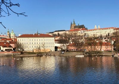 Běžíme po pravém břehu Vltavy po Rašínově nábřeží směrem k Výtoni, po druhé straně silnice běží ti, kteří už mají otočku u Železničního mostu za sebou. Mě to čeká za pár minut, skrz několik ulic uděláme otočku ve tvaru čtverce a pádím zase na sever po levé straně silnice. Po očku pozoruji protější směr a s úlevou konstatuji, že poslední rozhodně nejsem. Ale vyplatí se sledovat především situaci před sebou, zhruba v polovině nábřeží se na poslední chvíli vyhýbám staříkovi, který se rozhodl „proběhnout“ mezi davem běžců na druhou stranu ulice. Že to není dobrý nápad poznává vzápětí, kdy ho smetou hned dva závodníci za mnou. Ach jo…