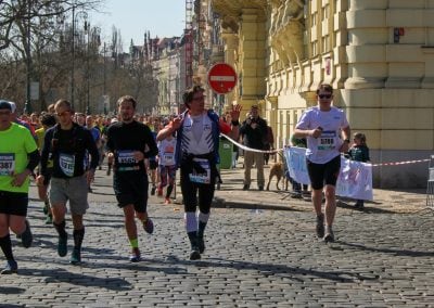Dvacátý kilometr, umístěný uprostřed Čechova mostu, už ani nevnímám. Podle hodinek stále držím tempo pod 6 minut na kilometr, ale na nějaké zrychlení kousek před cílem nemám ani pomyšlení. Historickou budovu sídla vlády ČR obíháme z druhé strany než před hodinou a pak podruhé vbíháme na Mánesův most, do cílové (skoro)rovinky. Někde na mostě prý stojí Jana s Aničkou, ale mě to je jedno. Očima hypnotizuji křižovatku na konci mostu, odkud je to do cíle jen pár metrů.