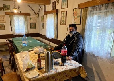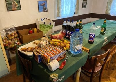 Uvnitř mě vítá Olaf a ještě jeden organizátor. Nabízejí tousty a něco k pití. Cítím se sytý ještě z Pecky, tak si beru jen banán a sušenku na cestu. Chvilku se posadím a masíruju koleno, naštěstí se zdá, že to bude dobré, už bolí jen neznatelně. Aktuálně jsem stále na šestém místě, začíná se ve mě ozývat závodník. Nerad bych o takové krásné místo přišel, proto se brzy loučím a vyrážím na poslední, dvacetikilometrový úsek. Nebo možná kratší, před odchodem mě totiž Olaf varuje, že se změnila trasa, že kvůli myslivcům s flintami přijdeme o šplhání do sjezdovky na Zvičinu, musíme jít po červené rovnou na vrchol. To je pech… 🙂