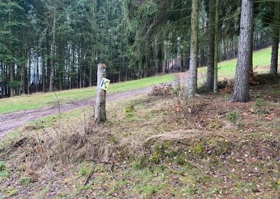 Netrvá dlouho a tělo mi začne hlásit, že kombinace dobrot pozřených na občerstvovačce není zrovna dobře stravitelná. Takže znovu do křoví, tentokrát rychle a na dlouho. A bohužel ne naposledy. Pak lehký výklus z kopce, ať si břicho trochu odpočine. U stoupání na Kazabrud už je břicho zase v pořádku, jen energie trochu začíná chybět. Řeším to energetickou tyčkou a doufám, že se ve mě ohřeje trochu déle, než tlačenka. Stoupání je docela dlouhé a prudké, bohužel na vrcholu 516 metrů vysokého kopce přichází další zklamání – kontrola nikde. Což vzhledem k tomu, že tohle zrovna nevypadá na frekventovaný cíl turistů, navíc mimo turistické značení, vyvolává otázku, jestli tady kontrola vůbec někdy byla pověšena…