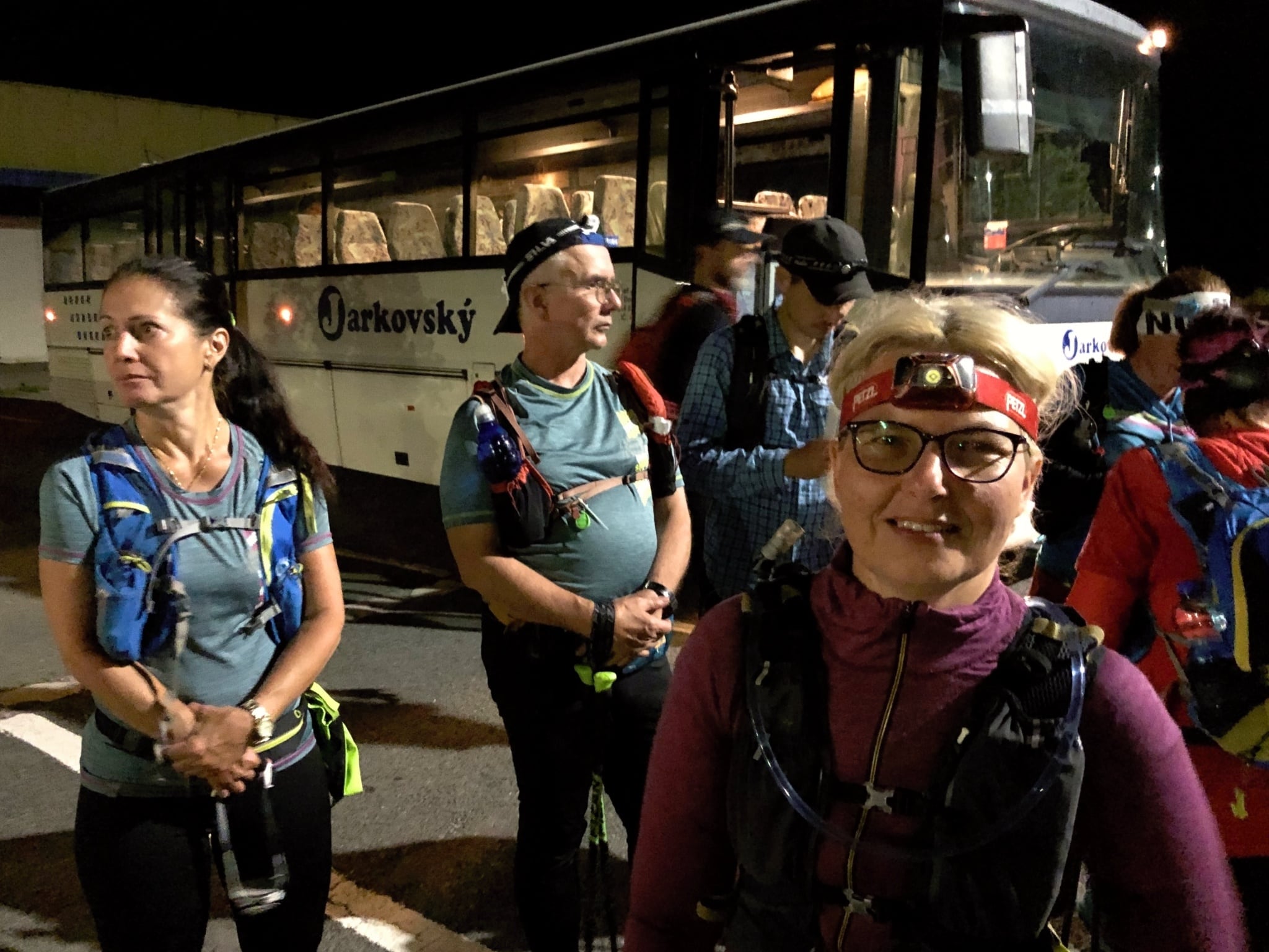 Odebral jsem se k autu doladit výbavu, obout závodní botky a vzít hůlky. Před desátou měly přijet dva autobusy, které nás mají odvézt na start závodu, do Náchoda. Šlápoty totiž už tradičně začínají někde daleko odsud, abychom si pokaždé užili jinou trasu, a také abychom si ne zrovna nejzáživnější okolí Týniště prošli každý rok maximálně jednou. Podle původního plánu jsme měli jet všichni společně vlakem, ale České dráhy prokázaly tradiční flexibilitu a prozákaznický přístup, a žádost o navýšení přepravní kapacity zamítly. Tak to zase zbylo na autobusovou přepravu…