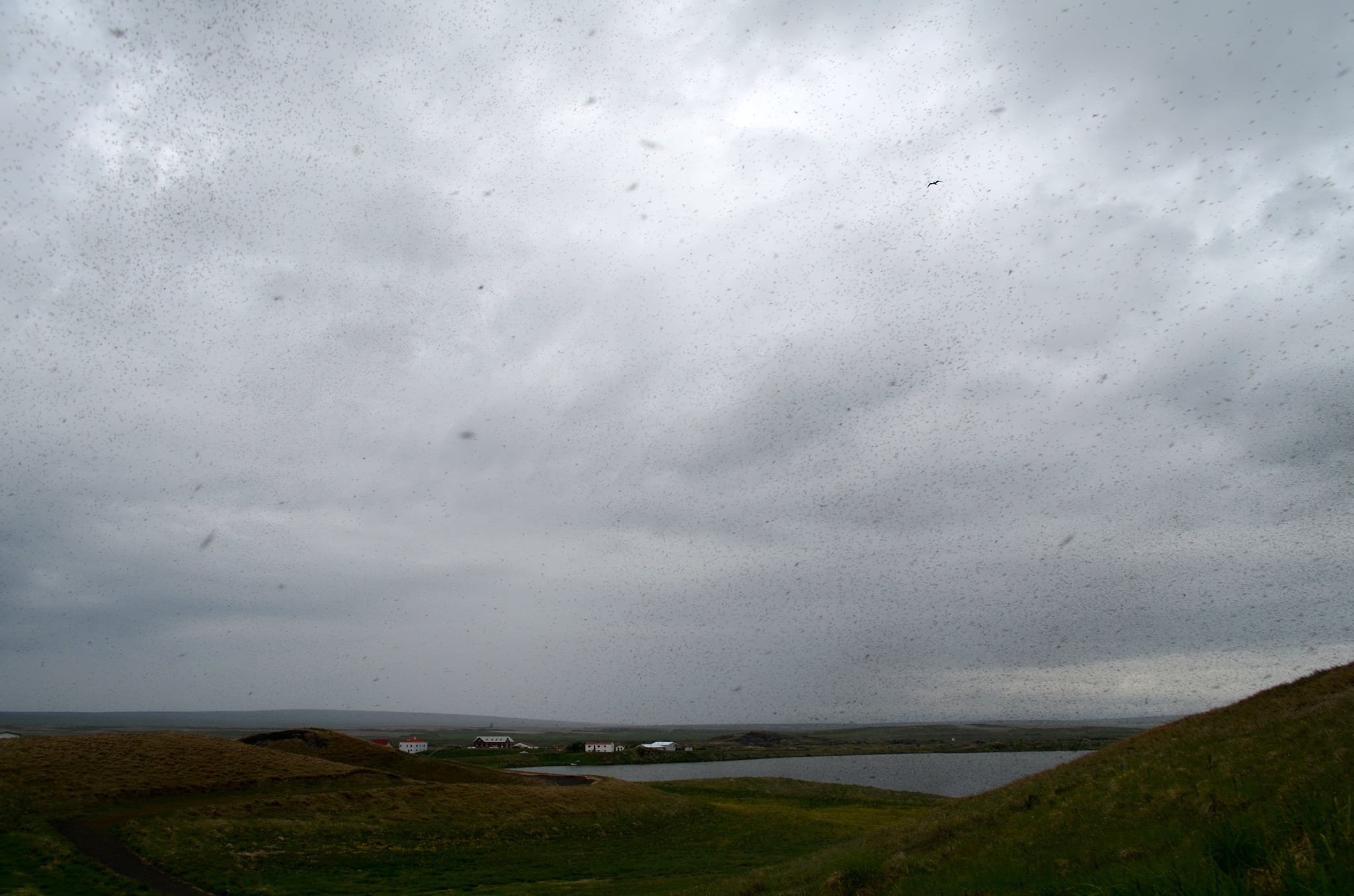 Zahajujeme krátký okruh po břehu jezera kolem několika pseudokráterů. A právě ve chvíli, kdy se z jednoho takového pseudokráteru kocháme pohledem na celé jezero, slabý déšť ustává. Jen několik okamžiků poté se kolem nás ozve zlověstné bzučení a prostor se zaplní neuvěřitelnou koncentrací komárů. Název Mývatn totiž v překladu znamená „Komáří jezero“ a události následujících minut trefnost tohoto jména jen potvrzují.