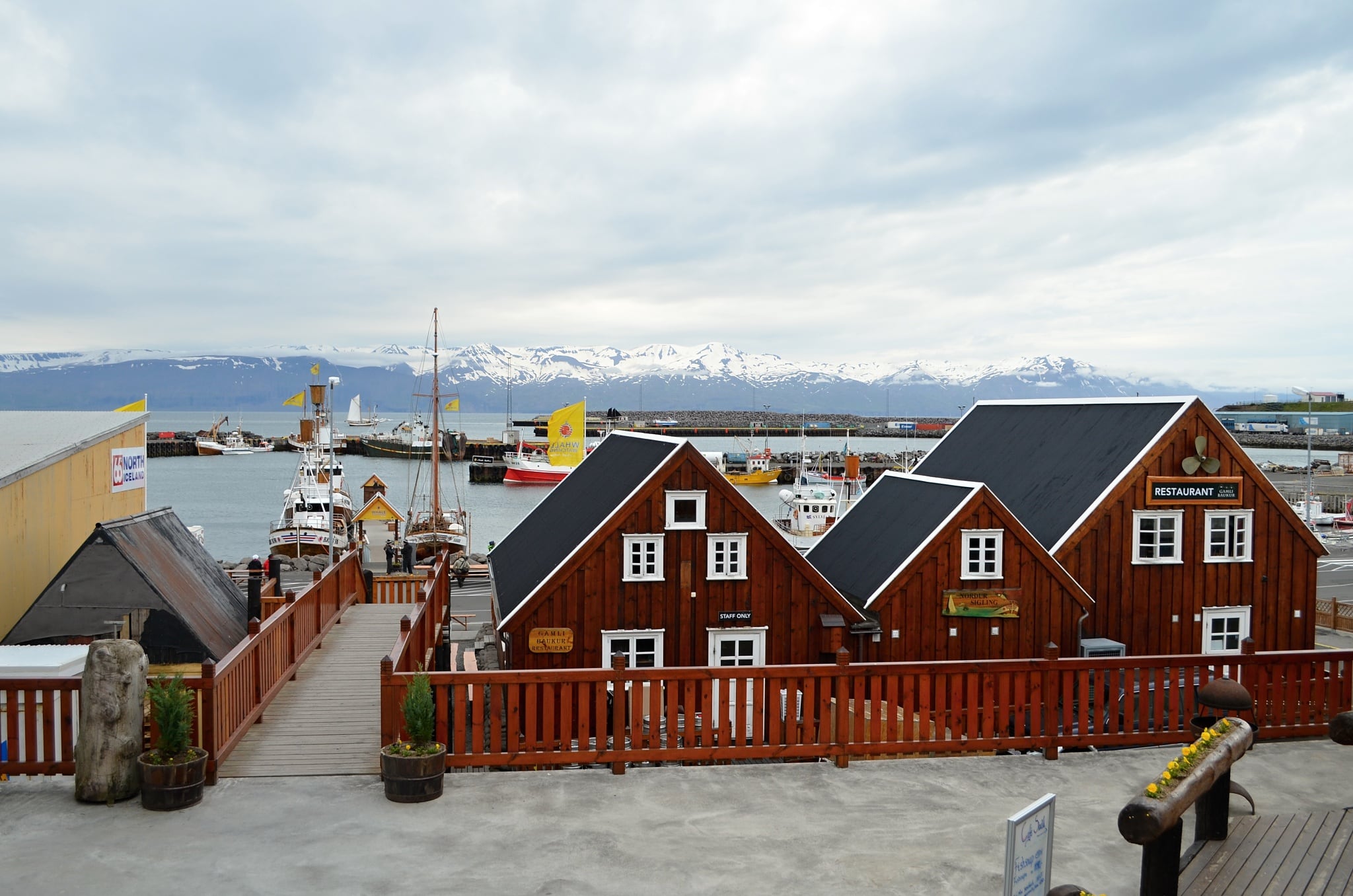 Do přístavu Húsavík přijíždíme kolem 19. hodiny a začínáme se porozhlížet po našem ubytovacím zařízení. Na islandské poměry je sice Húsavík se svými více jak 2200 obyvateli už slušně velké městečko, ale i tak máme pocit, že bychom velký hotel měli být schopni najít rychle a bez problémů vlastními silami. Po krátkém marném bloudění to ale vzdáváme, zastavujeme u místního turistického centra a Hanka se jde dovnitř zeptat kudy dál. Když se po chvilce vrátí, nemá zrovna dobré zprávy. Označení Húsavík totiž kromě samotného městečka nese i celá okolní oblast, takže náš hotel, ležící nikoliv ve městečku Húsavík, nýbrž v oblasti Húsavík, je od nás aktuálně vzdálen více jak 50 kilometrů směrem na jihovýchod. Což je dokonce ještě o pár kilometrů po cestě za vodopádem Goðafoss, odkud jsme dnes ráno vyrazili. Operativně proto měníme náš plán a jdeme se místo ubytování poohlédnout po něčem k snědku.