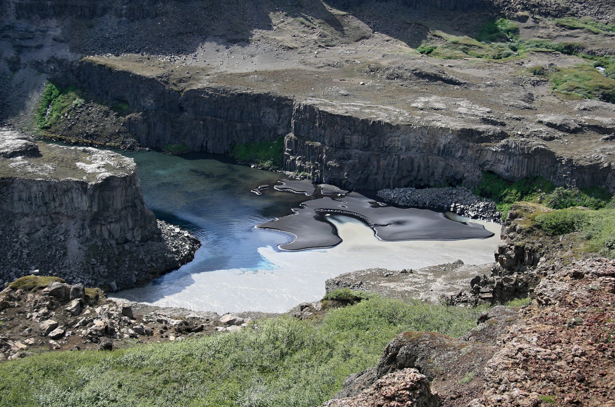 Na hlavní silnici pak pokračujeme v naší třítýdenní okružní cestě. Tento úsek silnice nám není úplně neznámý, včera jsme tudy jeli na Askju. Po mostě přes druhou nejdelší islandskou řeku Jökulsá á Fjöllum už ale jedeme poprvé. Pár metrů za mostem je odbočka spojená s odpočívadlem, kde na chvilku stavíme a koukáme do mapy. Další část cesty pojedeme na sever skrz národní park Jökulsárgljúfur. Jeho hlavním lákadlem je hluboký kaňon obepínající 35 km dlouhý úsek středního toku řeky Jökulsá á Fjöllum, který dosahuje v některých místech 120 m hloubky a 500 m šířky, a který je ozdoben několika překrásnými vodopády.
