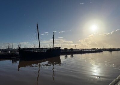 Procházka po okraji kanálu vedoucího do přístavu je nádherná. Sluníčko svítí, na obloze jen pár mráčků, nepřízeň počasí uplynulých dnů značí jen nečekaně vysoký počet louží a kaluží. Kolem mě běhají bežci, jezdí cyklisté, korzují turisté. Kochám se, koupu ve slunečních paprscích a pozvolna kráčím podle mapy v mobilu k mému bodu zájmu. Nacházím ho bez problémů, ale snaha něco se dozvědět není u první tabule moc ukojena…