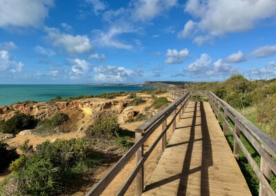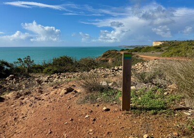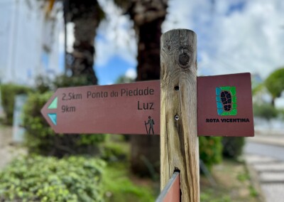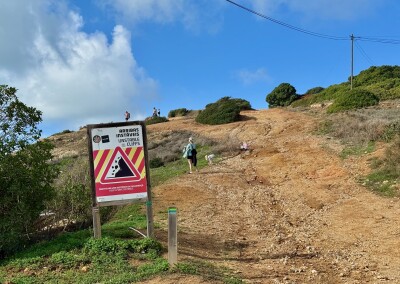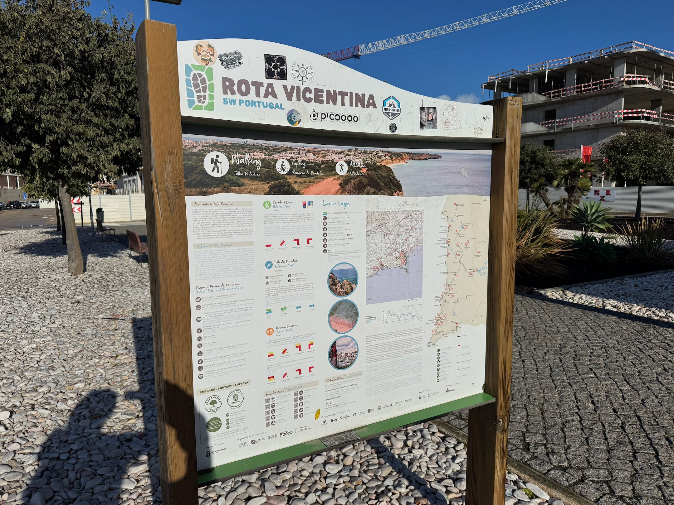 Naštěstí je tam tabule ještě jedna a ta už je trochu sdílnější. Kromě obecných informací tam jsou i podrobné informace o značení a orientační mapka. Detailně je pak rozepsána první etapa mezi Lagosem a Luzem v délce přibližně 11 kilometrů. Já mám pro dnešní den trochu větší ambice a veškerý itinerář v mobilu, tak si jen přečtu, jaký je vztah mezi Fishermen’s trailem a často zmiňovanou Rota Vicentina, a vydám se na cestu zpátky k hotelu.