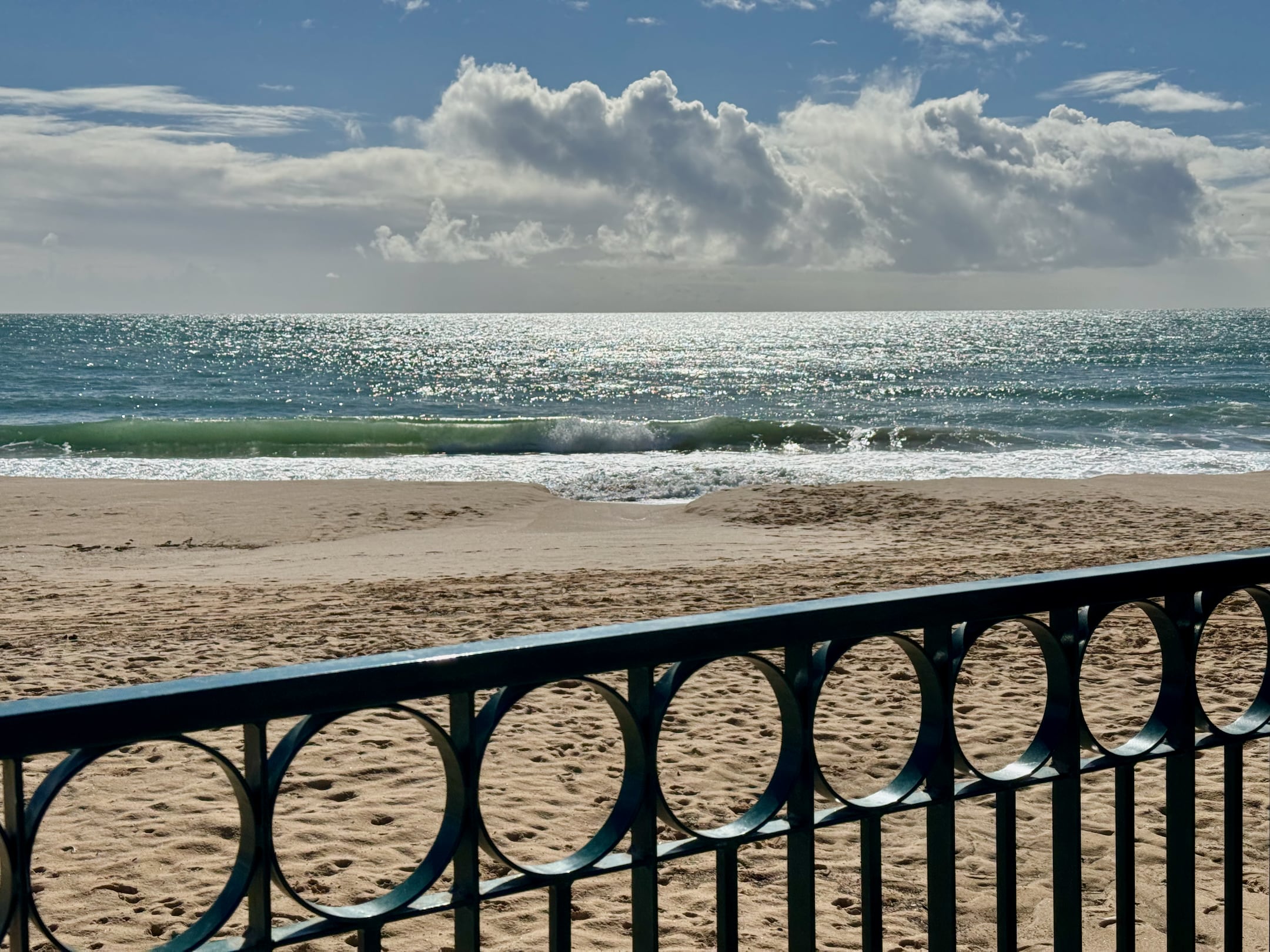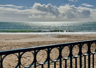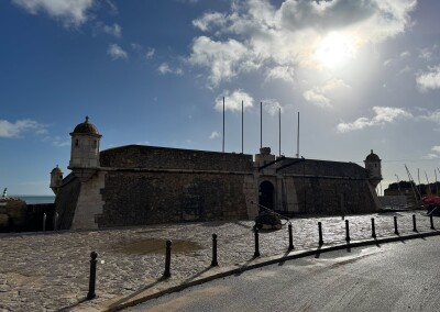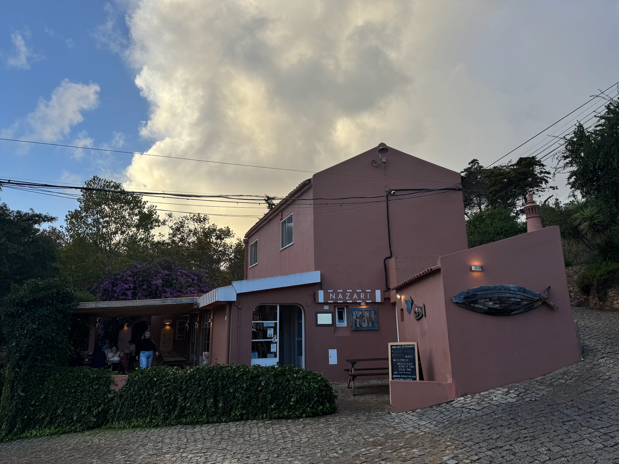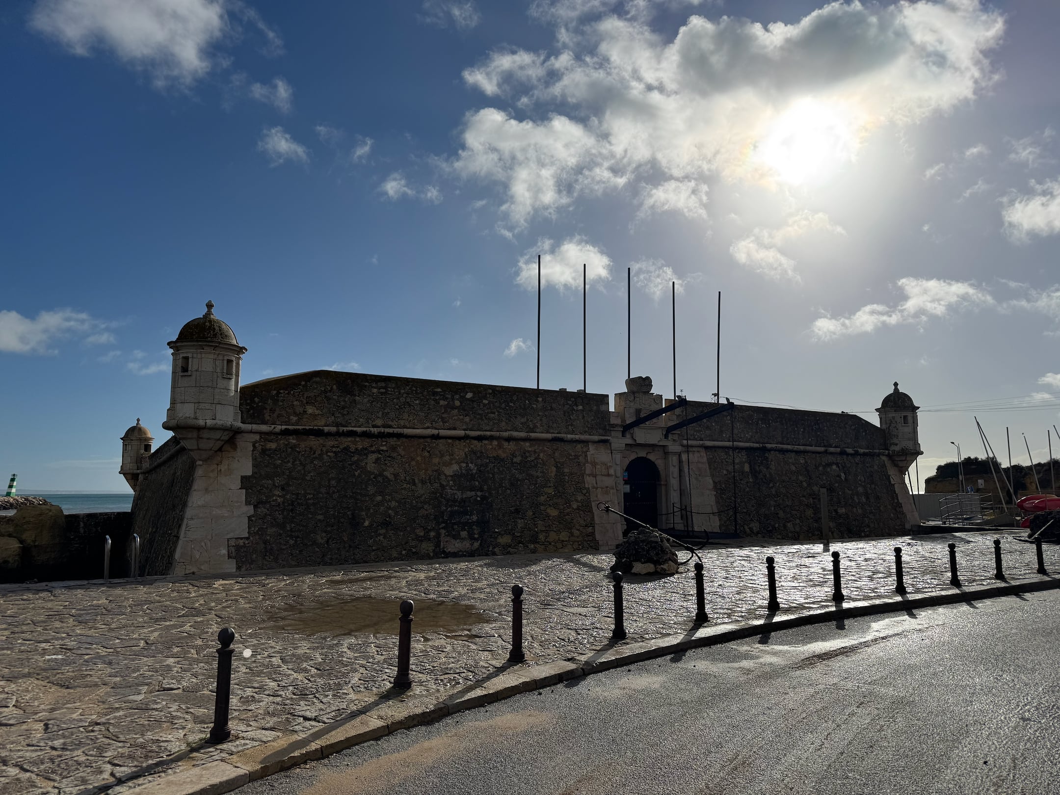 Nad malým městečkem Burgau chvíli obdivuju pozůstatky pevnosti zničené při velkém zemětřesení v listopadu roku 1755, ale pak dostanu hlad a z prudkého kopce seběhnu k moři, kde na mě v kavárně Café b čeká hezké volné místo na terase. Objednávám si kafe, sendvič s kuřetem a samozřejmě pivo. A pak ještě druhé, pro jistotu.