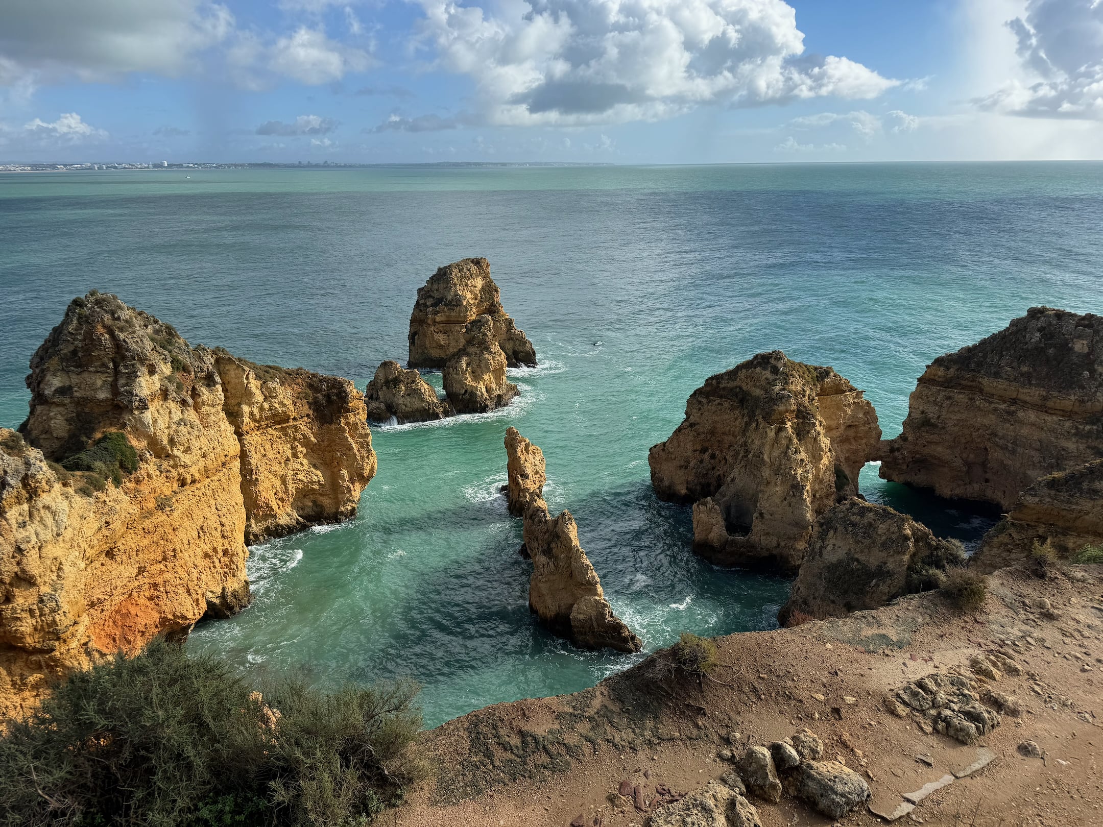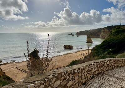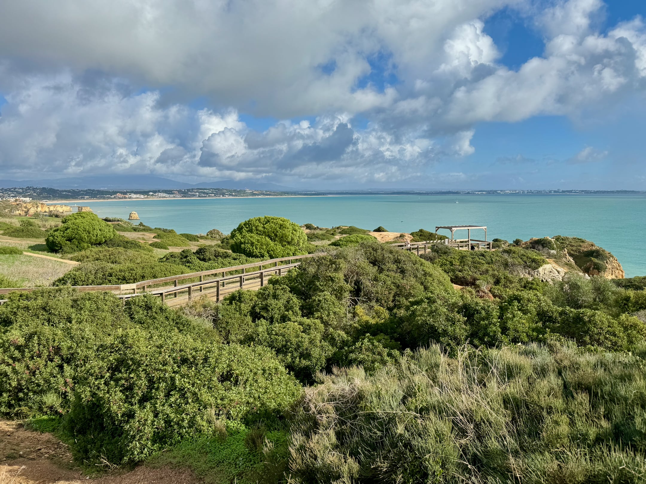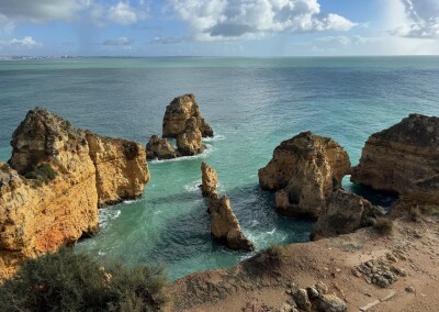 Mým prvním dnešním cílem je mys na jihu města, na kterém je postaven malý maják, a odkud je krásný výhled na jeden z taháků místní přírody, skalnatý útvar nazvaný Ponta de Piedade (v překladu něco jako Mys Milosrdenství). Z hladiny moře to asi vynikne lépe, také jsem cestou potkal spoustu stánků nabízejících výlety lodí nebo na kajaku, ale i zezhora to je moc hezký pohled.