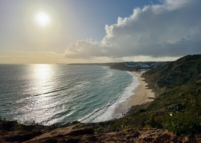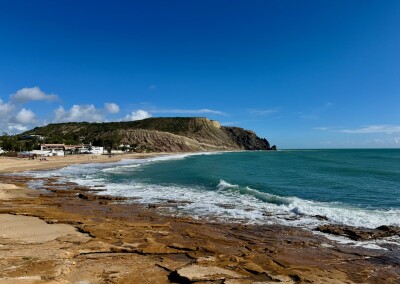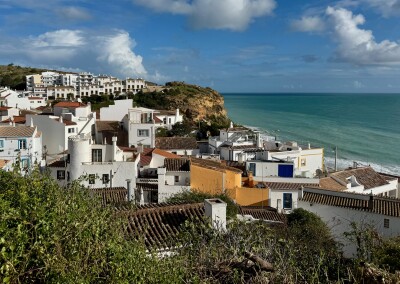 Následující stovky metrů mě opět zavedou něco málo do vnitrozemí, ale to už se přede mnou objevují první domy vesnice Salema, kde má dnešní cesta téměř skončí. Hezké barevné domečky a několik otevřených podniků mě nezláká se na chvíli zastavit, tak jen obhlídnu plá s číslem 17 a po krátké konzultace se navigací vyrazím na sever do prudkého kopce, kde by asi po 1500 metrech měl čekat kýžený kemp.