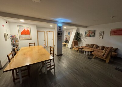 V hotelovém lobby už to pěkně voní, tak rovnou po schodech seběhnu jedno patro dolů do suterénu, kde je malá, ale útulná jídelna. Nevím, kolik je zde aktuálně hostů, ale menu je víc než bohaté. S vidinou celodenního šlapání se nijak neodbývám a když mi něco chutná, jdu si přidat. Dokonce si můžu dát i malý přípitek na zdar expedice, tak do sebe po jídle otočím skleničku Prosecca a výlet může začít!