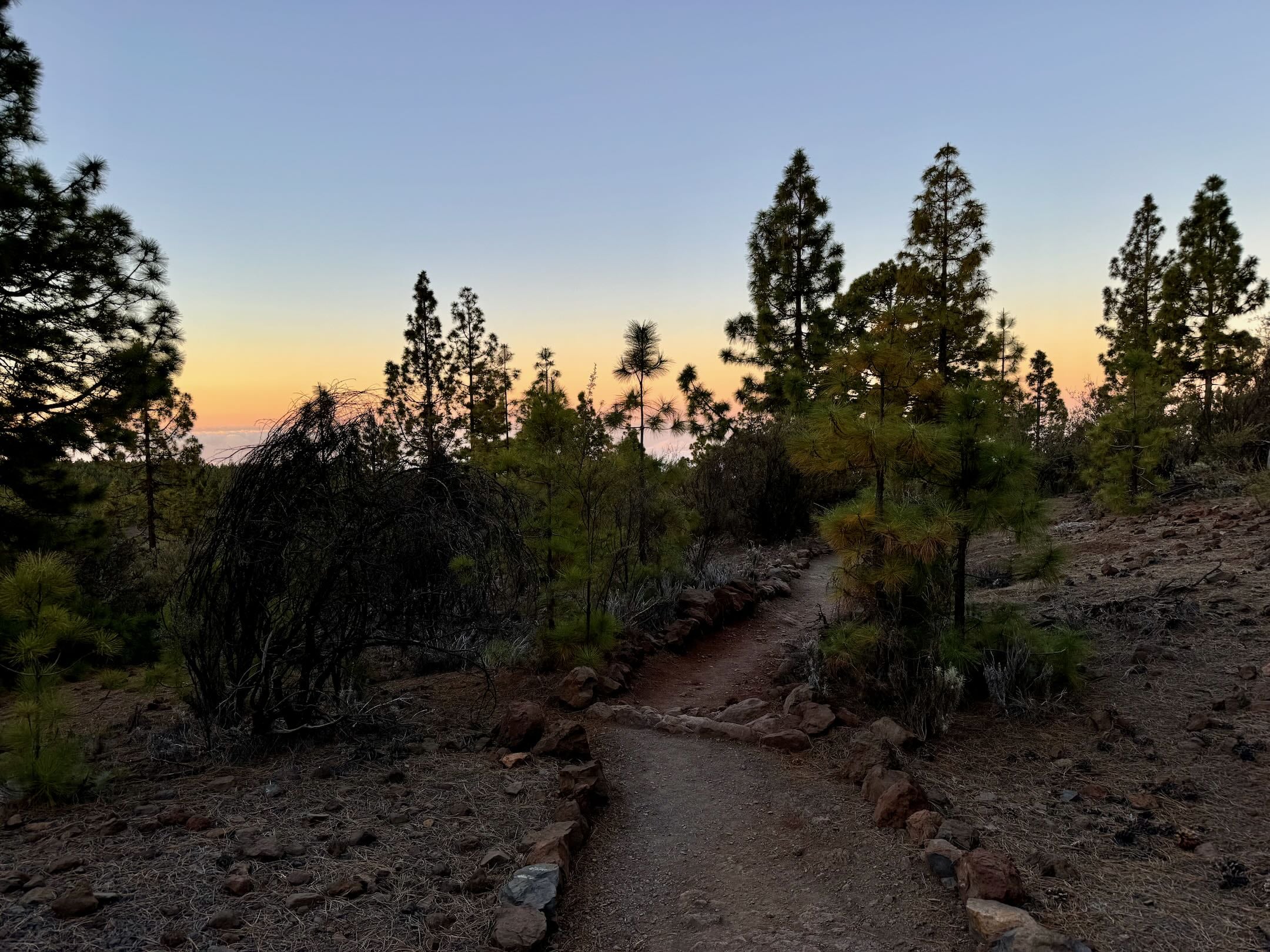 V dálce vidím skupinku turistů, ale než je stihnu dojít, odbočí doprava a sestupují k městečku Arona. Tam jsem původně měl začínat svůj trek, GR-131 začíná (nebo končí) právě tam, než mi změna data odletu udělala drobnou čáru přes rozpočet. V místě jejich odloučení na mě na kameni vykoukne další značka, tentokrát červeno-bílá, značící slavnou a řekněme „hlavní“ trailovou trasu Tenerife a vůbec celého Kanárského souostroví, nazývanou GR-131. Po značené trase se mi jde lépe, kilometry naskakují a já se můžu kochat dalšími a dalšími krásami zdejší přírody.